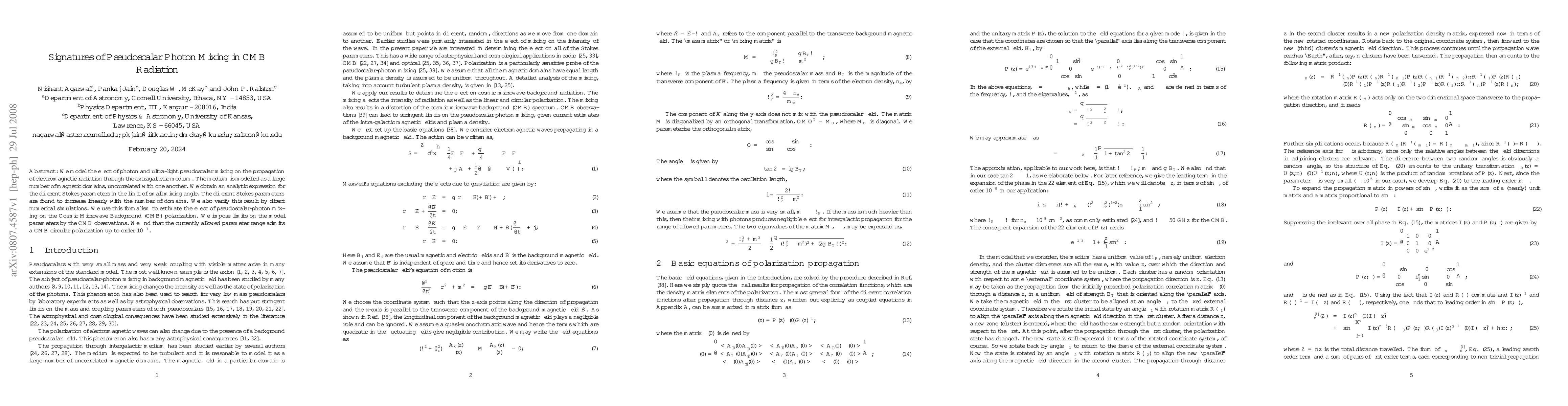 This paper models the impact of photon and pseudoscalar mixing on electromagnetic radiation, deriving an analytic expression for Stokes parameters and verifying it with simulations. It estimates the effect on CMB polarization, finding that current parameter ranges allow for a small but measurable circular polarization in the CMB.