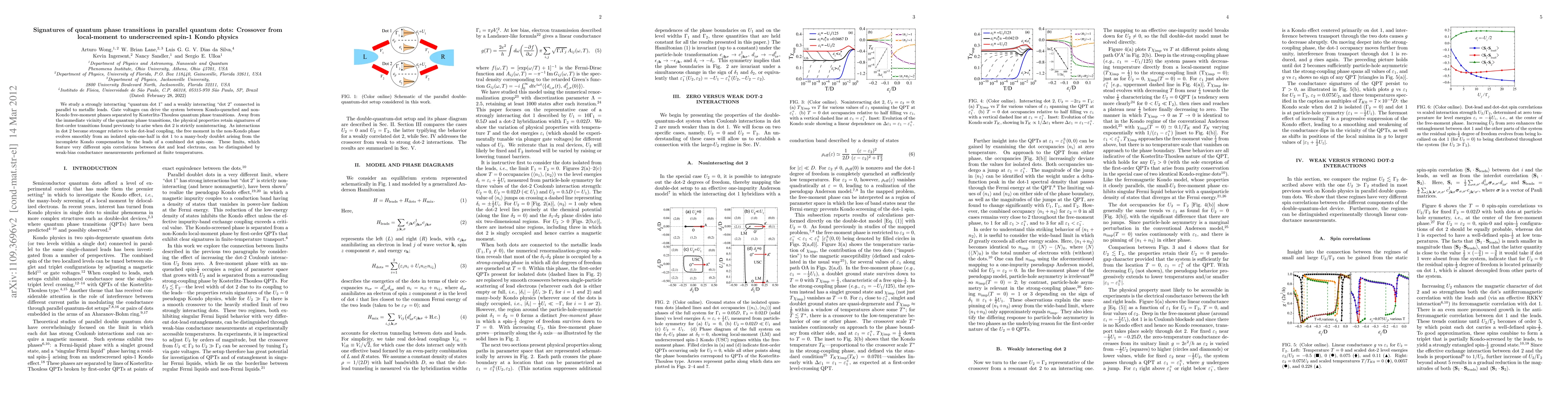 We study a strongly interacting "quantum dot 1" and a weakly interacting "dot 2" connected in parallel to metallic leads. Gate voltages can drive the system between Kondo-quenched and non-Kondo free-moment phases separated by Kosterlitz-Thouless quantum phase transitions. Away from the immediate vicinity of the quantum phase transitions, the physical properties retain signatures of first-order transitions found previously to arise when dot 2 is strictly noninteracting. As interactions in dot 2 become stronger relative to the dot-lead coupling, the free moment in the non-Kondo phase evolves smoothly from an isolated spin-one-half in dot 1 to a many-body doublet arising from the incomplete Kondo compensation by the leads of a combined dot spin-one. These limits, which feature very different spin correlations between dot and lead electrons, can be distinguished by weak-bias conductance measurements performed at finite temperatures.