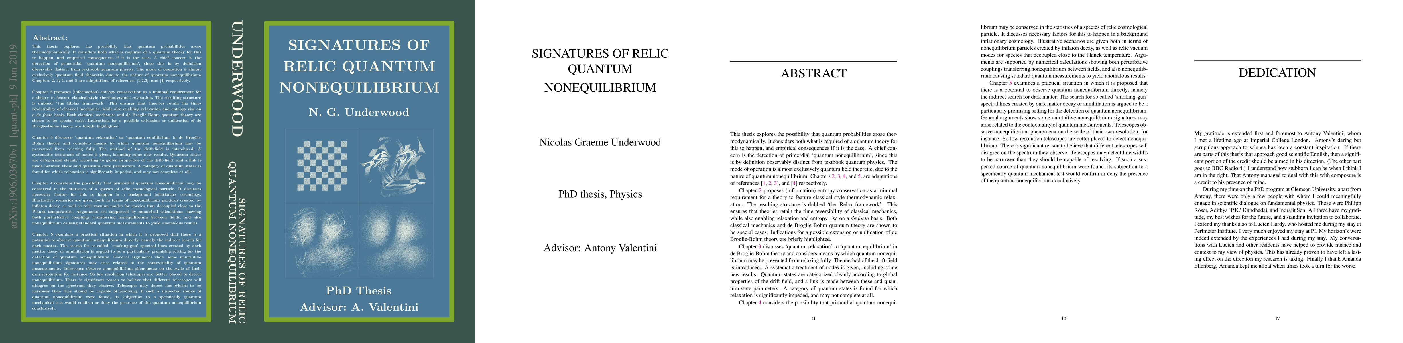[Shortened Abstract:] This thesis explores the possibility that quantum probabilities arose thermodynamically. A chief concern is the detection of primordial `quantum nonequilibrium', since this is observably distinct from textbook quantum physics. Chapters 2, 3, 4, and 5 are adaptations of references [1,2,3], and [4] respectively. Chapter 2 proposes (information) entropy conservation as a minimal requirement for a theory to feature classical-style thermodynamic relaxation. The resulting structure is dubbed `the iRelax framework'. Both classical mechanics and de Broglie-Bohm quantum theory are shown to be special cases. Indications for a possible extension or unification of de Broglie-Bohm theory are briefly highlighted. Chapter 3 examines ways in which quantum relaxation may be prevented. The method of the drift-field is introduced. A systematic treatment of nodes is given. A category of quantum states is found for which relaxation is significantly impeded, and may not complete at all. Chapters 4 and 5 consider the possibility that primordial quantum nonequilibrium may be conserved in the statistics of a species of relic cosmological particle. Necessary factors for this to be the case are discussed and illustrative scenarios are given both in terms of nonequilibrium particles created by inflaton decay, as well as relic vacuum modes for species that decoupled close to the Planck temperature. The search for so-called `smoking-gun' spectral lines created by dark matter decay or annihilation is argued to be a particularly promising setting for the detection of quantum nonequilibrium. Unintuitive spectral effects relating to the contextuality of quantum measurements are described. If such a suspected source of quantum nonequilibrium were found, its subjection to a specifically quantum mechanical test would confirm or deny the presence of the quantum nonequilibrium conclusively.