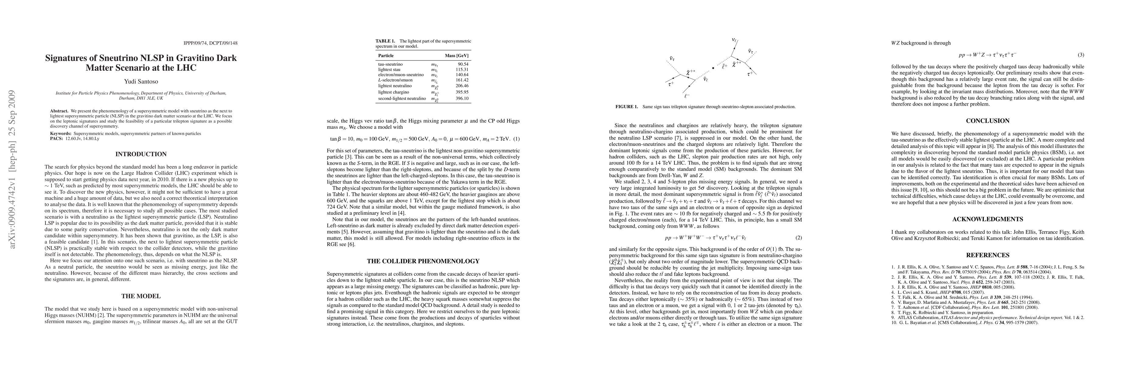 This paper explores a supersymmetric model where the sneutrino serves as the next to lightest supersymmetric particle (NLSP) in a gravitino dark matter context at the LHC. It investigates leptonic signatures, particularly focusing on the feasibility of a trilepton signature as a potential discovery channel for supersymmetry.