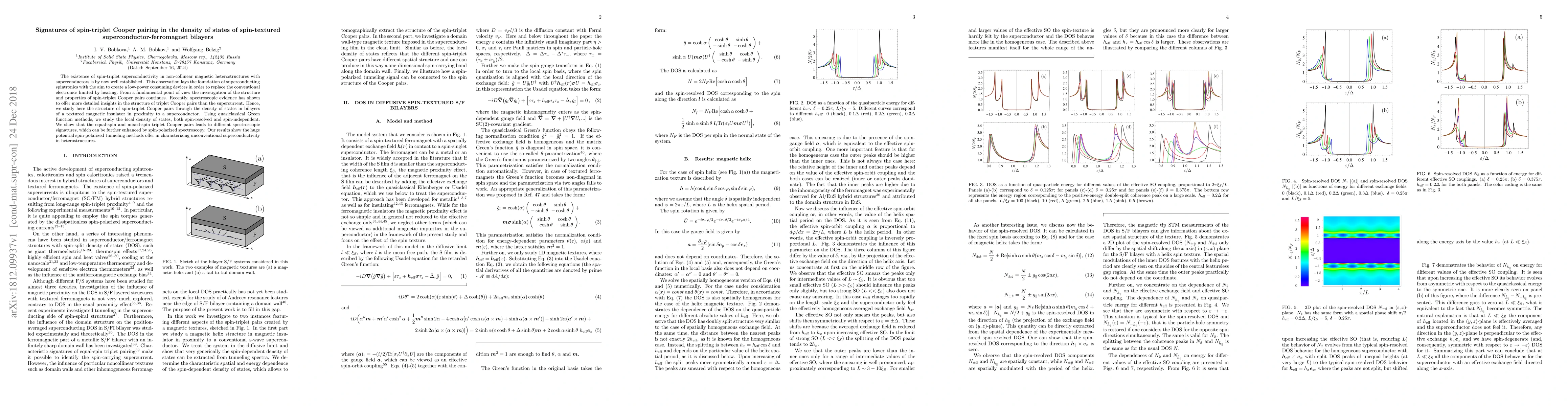This paper investigates the signatures of spin-triplet Cooper pairing in superconductor-ferromagnet bilayers through the density of states, revealing distinct spectroscopic signatures for equal-spin and mixed-spin triplet Cooper pairs, which can be enhanced by spin-polarized tunneling methods. The findings highlight the potential of these methods for characterizing unconventional superconductivity in magnetic heterostructures.