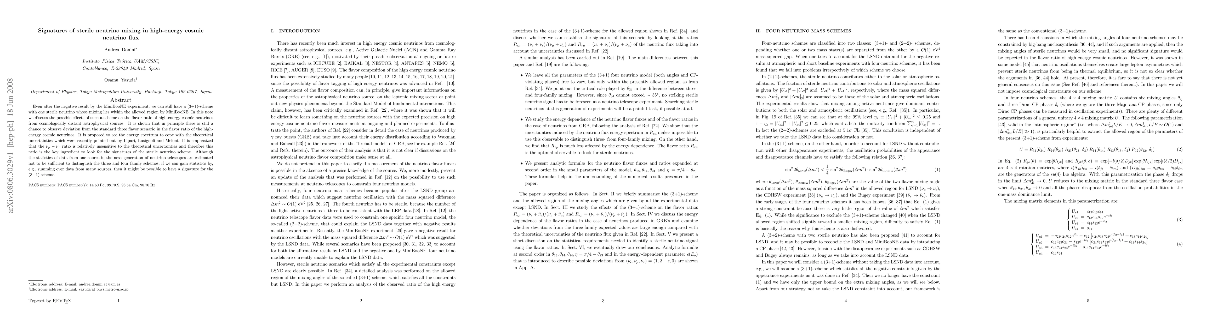 This research explores the possibility of detecting sterile neutrinos via their impact on high-energy cosmic neutrino flavor ratios. Despite negative MiniBooNE results, a (3+1)-scheme with a sterile neutrino is still theoretically viable. The study suggests observing the $ u_mu- u_ au$ ratio in cosmic neutrino data from multiple sources, as it's less affected by theoretical uncertainties, to potentially uncover signatures of the sterile neutrino scheme.