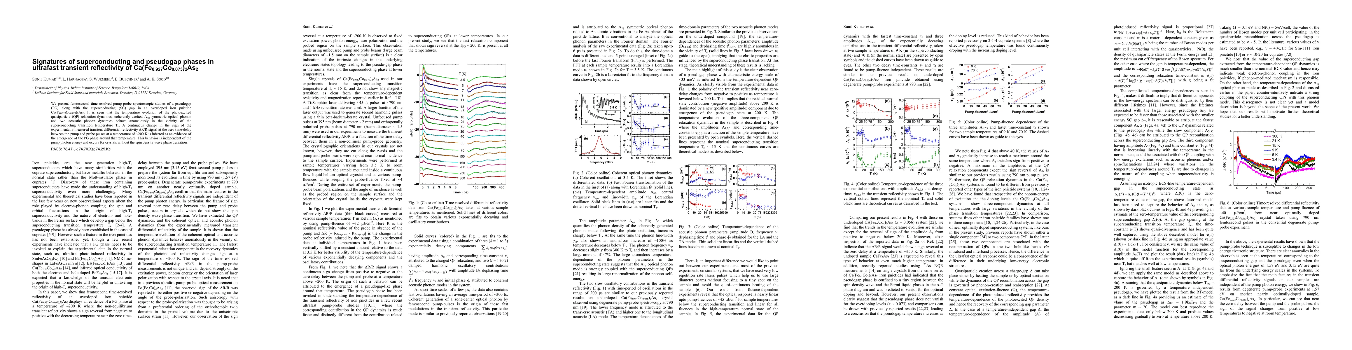 We present femtosecond time-resolved pump-probe spectroscopic studies of a pseudogap (PG) along with the superconducting (SC) gap in an overdoped iron pnictide Ca(Fe0.927Co0.073)2As2. It is seen that the temperature evolution of the photoexcited quasiparticle (QP) relaxation dynamics, coherently excited A1g-symmetric optical phonon and two acoustic phonon dynamics behave anomalously in the vicinity of the superconducting transition temperature Tc. A continuous change in the sign of the experimentally measured transient differential reflectivity Delta_R/R signal at the zero time-delay between the pump and probe pulses at a temperature of ~200 K is inferred as an evidence of the emergence of the PG phase around that temperature. This behavior is independent of the pump photon energy and occurs for crystals without the spin density wave phase transition.