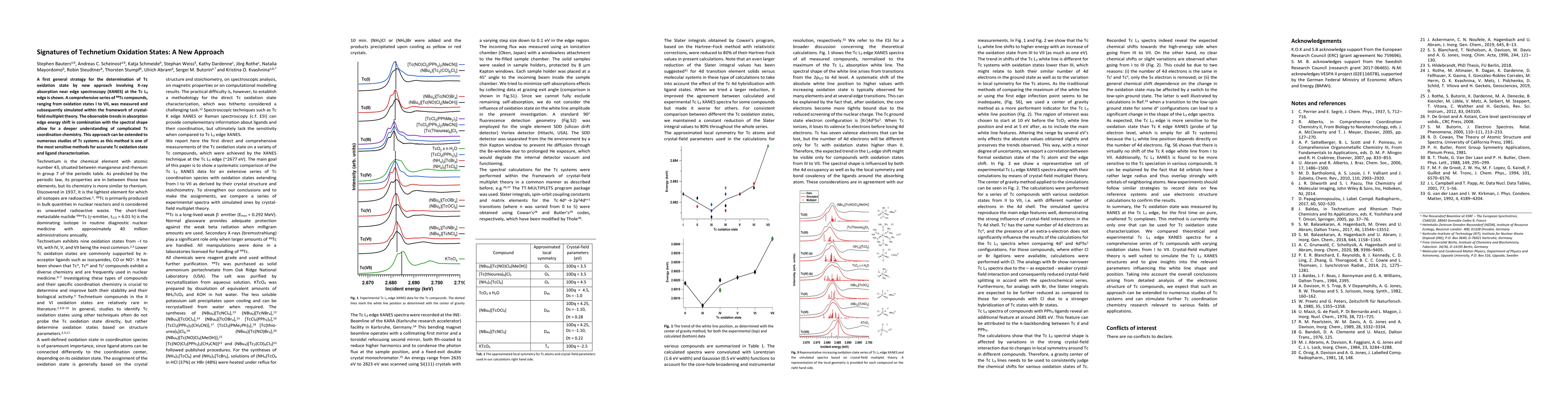 The research presents a new method using X-ray absorption near edge spectroscopy (XANES) to determine technetium (Tc) oxidation states. By analyzing a series of 99Tc compounds, the study establishes observable trends linking absorption edge energy shifts to spectral shape, aiding comprehension of Tc coordination chemistry. This sensitive approach can be broadly applied for accurate Tc oxidation state and ligand characterization in various Tc systems.
