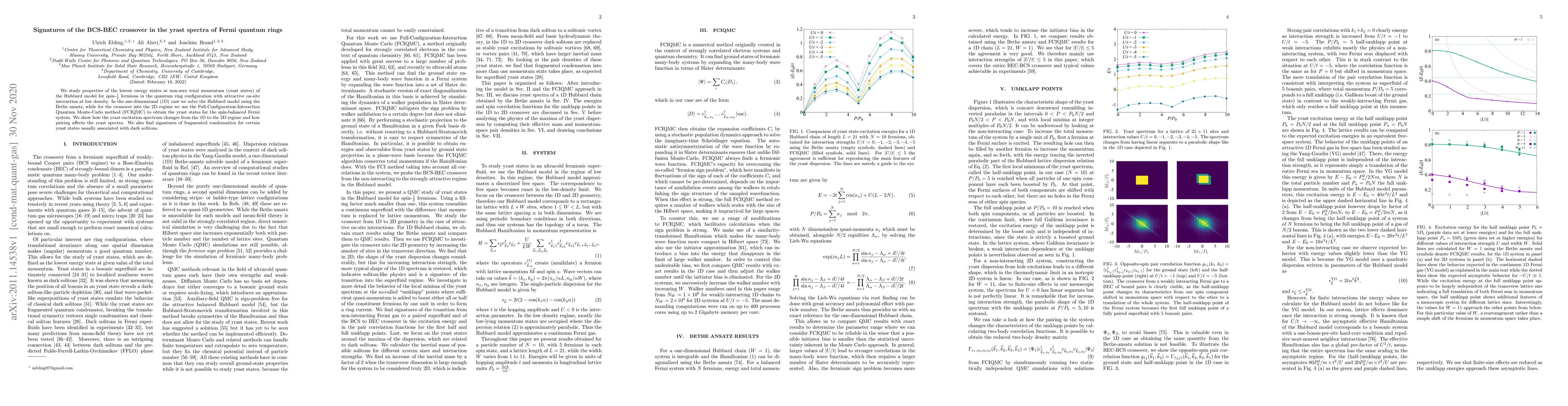 We study properties of the lowest energy states at non-zero total momentum (yrast states) of the Hubbard model for spin-1/2 fermions in the quantum ring configuration with attractive on-site interaction at low density. In the one-dimensional (1D) case we solve the Hubbard model using the Bethe ansatz, while for the crossover into the 2D regime we use the Full-Configuration-Interaction Quantum Monte-Carlo method (FCIQMC) to obtain the yrast states for the spin-balanced Fermi system. We show how the yrast excitation spectrum changes from the 1D to the 2D regime and how pairing affects the yrast spectra. We also find signatures of fragmented condensation for certain yrast states usually associated with dark solitons.