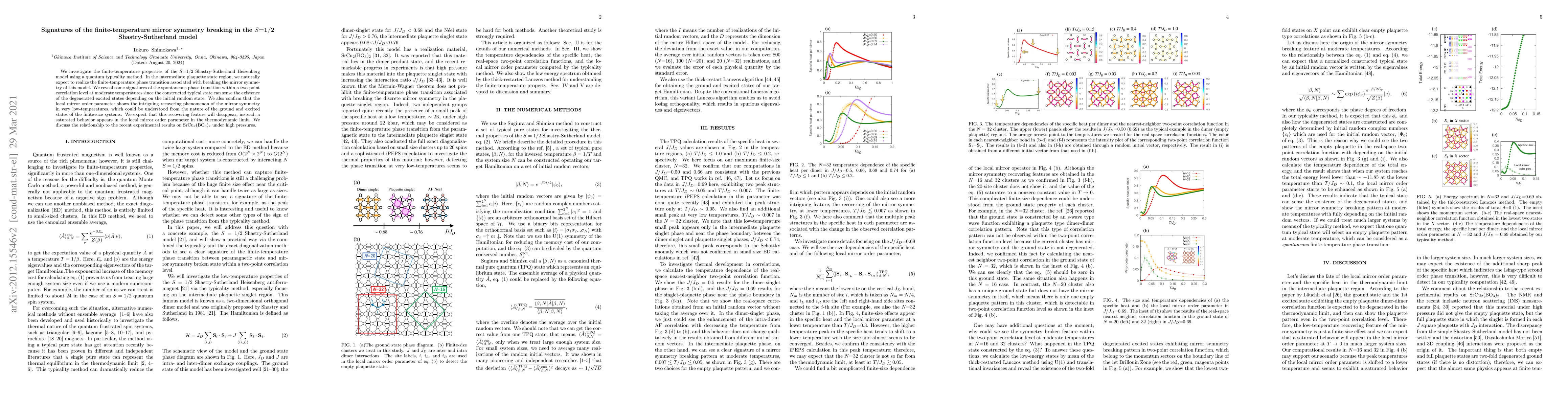 We investigate the finite-temperature properties of the $S$=1/2 Shastry-Sutherland Heisenberg model using a quantum typicality method. In the intermediate plaquette state region, we naturally expect to realize the finite-temperature phase transition associated with breaking the mirror symmetry of this model. We reveal some signatures of the spontaneous phase transition within a two-point correlation level at moderate temperatures since the constructed typical state can sense the existence of the degenerated excited states depending on the initial random state. We also confirm that the local mirror order parameter shows the intriguing recovering phenomenon of the mirror symmetry in very low-temperatures, which could be understood from the nature of the ground and excited states of the finite-size systems. We expect that this recovering feature disappears; instead, a saturated behavior appears in the local mirror order parameter in the thermodynamic limit. We discuss the relationship to the recent experimental results on ${\rm SrCu_2(BO_3)_2}$ under high pressures.