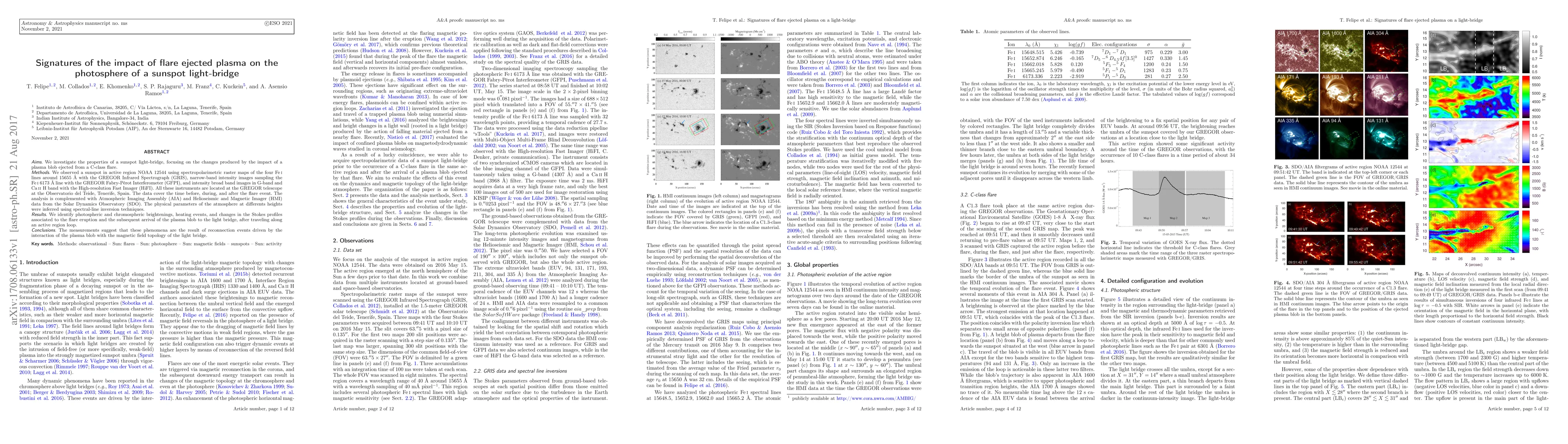 This paper investigates the effects of a plasma blob ejected from a C-class flare on a sunspot light-bridge, observing changes using various spectropolarimetric and imaging instruments. The study identifies photospheric and chromospheric brightenings and heating events, suggesting reconnection events driven by the plasma blob's interaction with the light bridge's magnetic field.