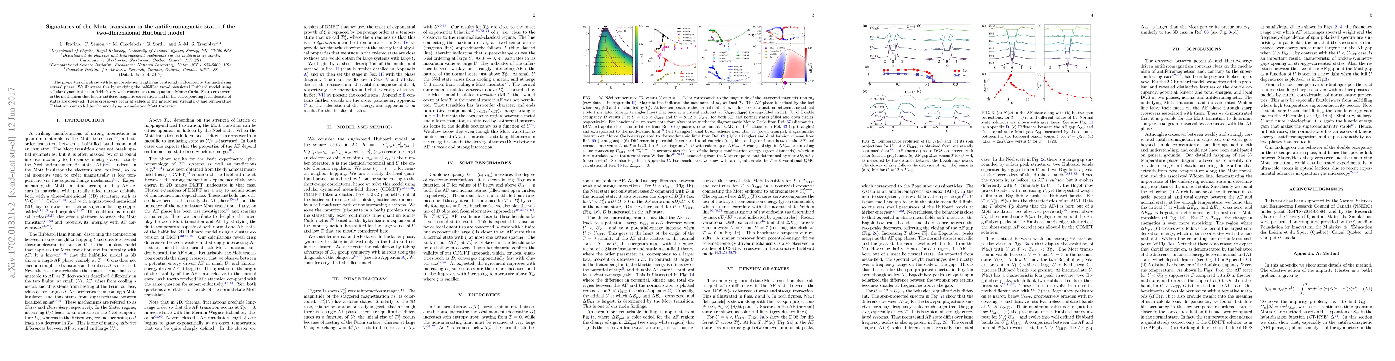This paper investigates the Mott transition in the two-dimensional Hubbard model, revealing sharp crossovers in antiferromagnetic correlations and local density of states influenced by the normal-state Mott transition. The study uses cellular dynamical mean-field theory with continuous-time quantum Monte Carlo to analyze these phenomena.