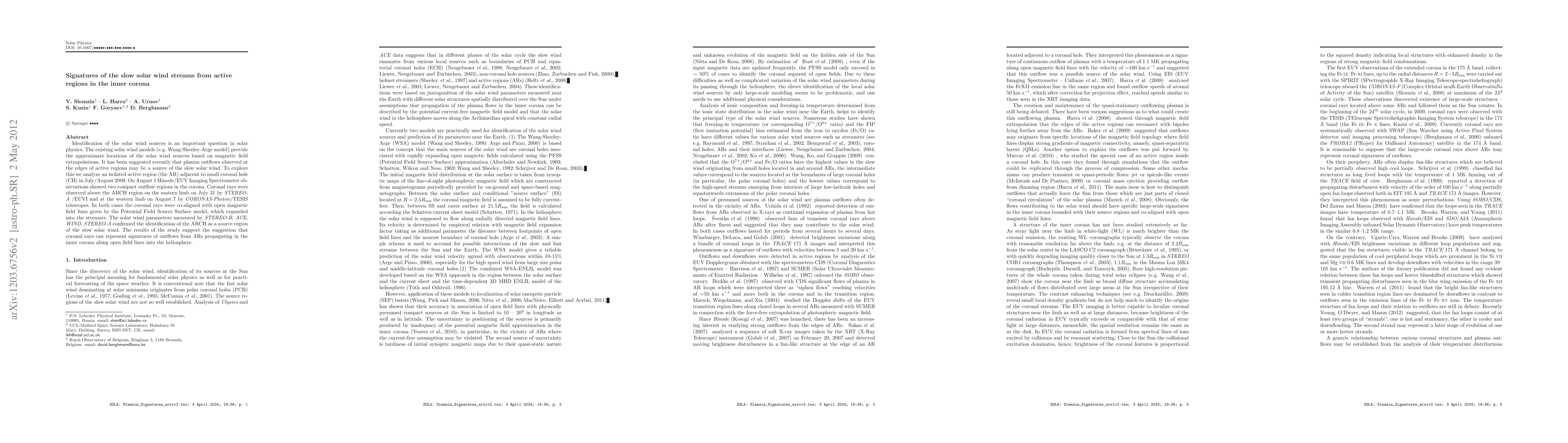 This study investigates the relationship between spectroscopically detected plasma outflows at active region edges and "coronal rays" observed in the inner corona. Observations from EUV telescopes identified outflows and associated ray-like structures, confirming that coronal rays represent signatures of slow solar wind streams emanating from active regions and propagating along open magnetic field lines.