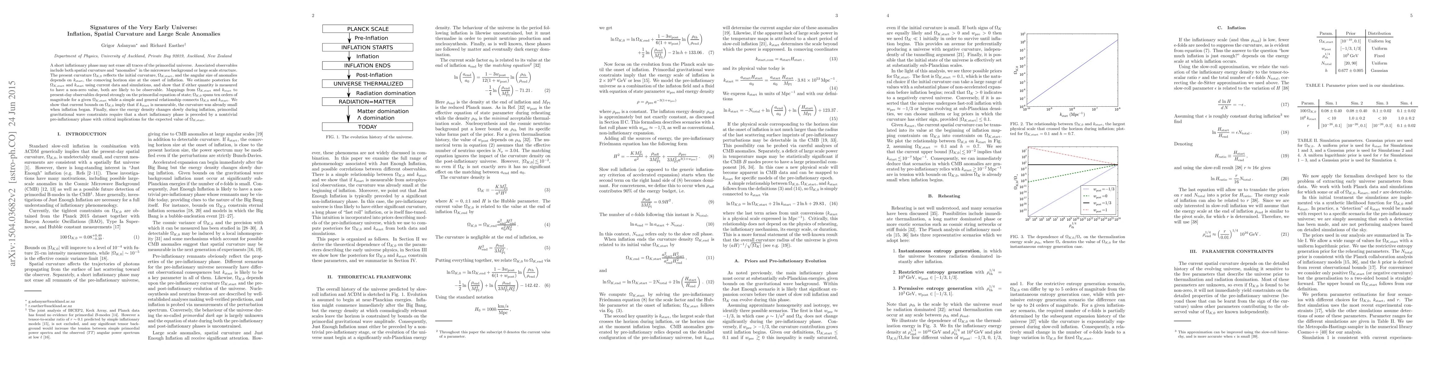 A short inflationary phase may not erase all traces of the primordial universe. Associated observables include both spatial curvature and "anomalies" in the microwave background or large scale structure. The present curvature $\Omega_{K,0}$ reflects the initial curvature, $\Omega_{K,\mathrm{start}}$, and the angular size of anomalies depends on $k_\mathrm{start}$, the comoving horizon size at the onset of inflation. We estimate posteriors for $\Omega_{K,\mathrm{start}}$ and $k_\mathrm{start}$ using current data and simulations, and show that if either quantity is measured to have a non-zero value, both are likely to be observable. Mappings from $\Omega_{K,\mathrm{start}}$ and $k_\mathrm{start}$ to present-day observables depend strongly on the primordial equation of state; $\Omega_{K,0}$ spans ten orders of magnitude for a given $\Omega_{K,\mathrm{start}}$ while a simple and general relationship connects $\Omega_{K,0}$ and $k_\mathrm{start}$. We show that current bounds on $\Omega_{K,0}$ imply that if $k_\mathrm{start}$ is measurable, the curvature was already small when inflation began. Finally, since the energy density changes slowly during inflation, primordial gravitational wave constraints require that a short inflationary phase is preceded by a nontrivial pre-inflationary phase with critical implications for the expected value of $\Omega_{K,\mathrm{start}}$.
