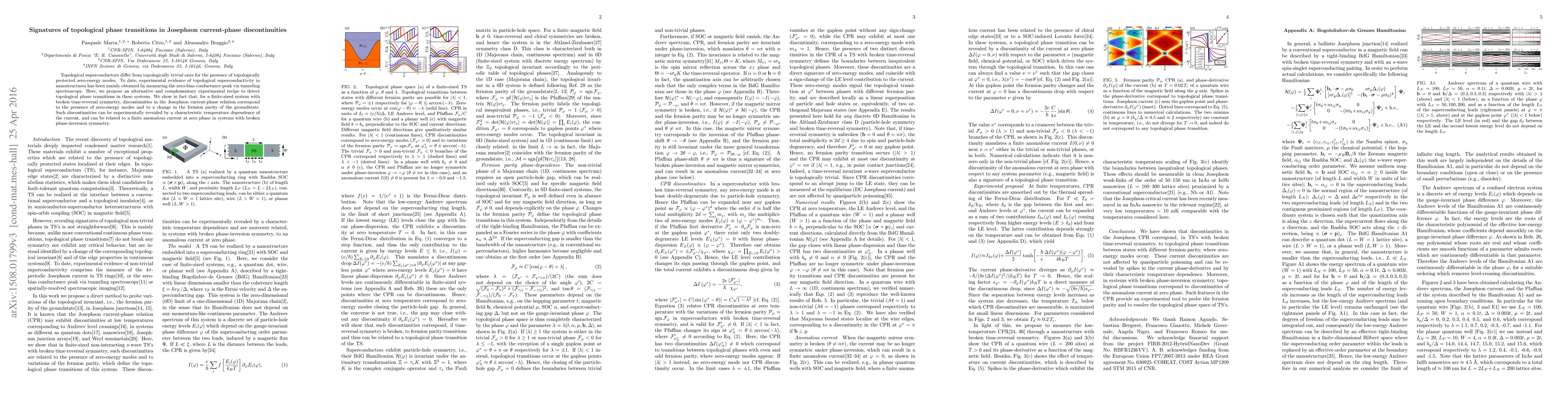 This paper proposes a novel method to detect topological phase transitions in topological superconductors by observing discontinuities in the Josephson current-phase relation, which correspond to zero-energy modes and changes in fermion parity. These discontinuities can be identified through a characteristic temperature dependence of the current, offering a complementary experimental approach to existing tunneling spectroscopy methods.