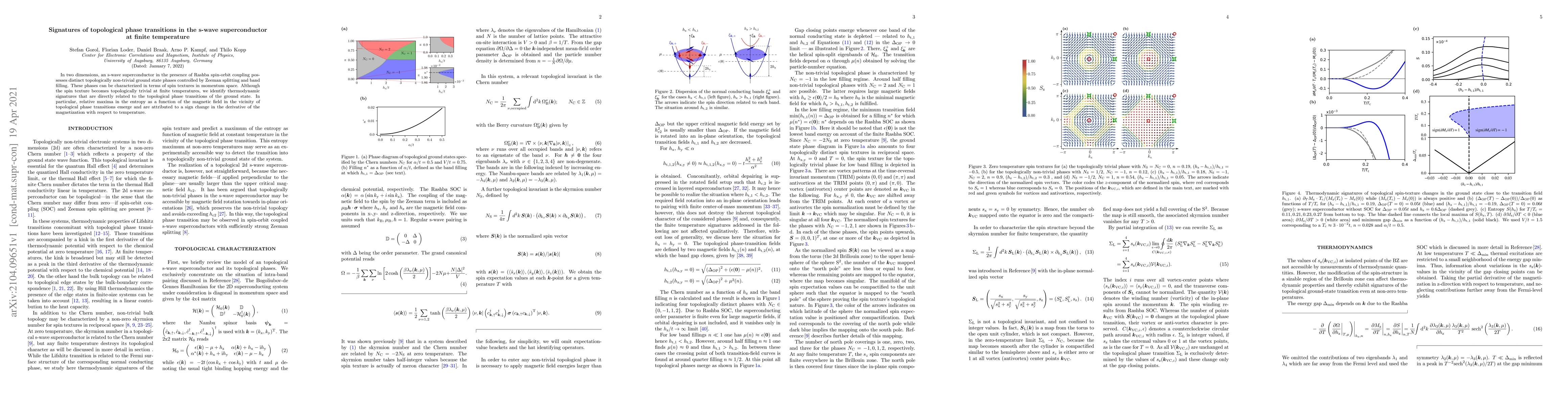 Researchers found thermodynamic signatures at finite temperatures in an s-wave superconductor with Rashba spin-orbit coupling, indicating distinct topological phase transitions. These transitions are characterized by a sign change in the derivative of magnetization with respect to temperature.