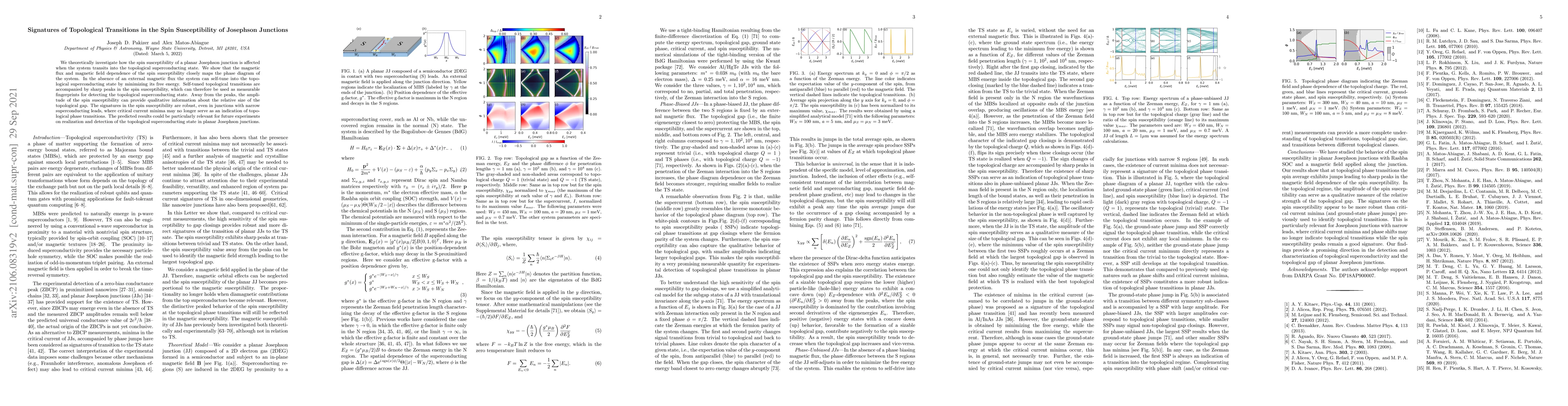 This paper investigates the spin susceptibility of planar Josephson junctions transitioning into topological superconducting states, revealing that sharp peaks in spin susceptibility serve as fingerprints for these transitions. The study combines numerical simulations and analytical models to predict robust signatures in spin susceptibility, providing a new method for detecting topological phases.