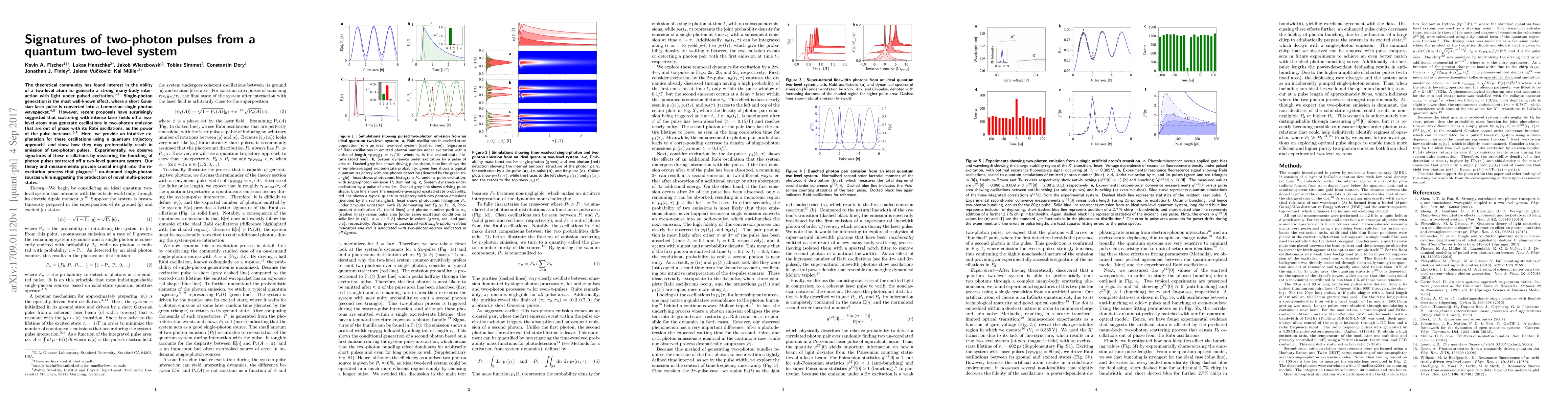 The theoretical community has found interest in the ability of a two-level atom to generate a strong many-body interaction with light under pulsed excitation. Single-photon generation is the most well-known effect, where a short Gaussian laser pulse is converted into a Lorentzian single-photon wavepacket. However, recent proposals have surprisingly suggested that scattering with intense laser fields off a two-level atom may generate oscillations in two-photon emission that are out of phase with its Rabi oscillations, as the power of the pulse increases. Here, we provide an intuitive explanation for these oscillations using a quantum trajectory approach and show how they may preferentially result in emission of two-photon pulses. Experimentally, we observe signatures of these oscillations by measuring the bunching of photon pulses scattered off a two-level quantum system. Our theory and measurements provide crucial insight into the re-excitation process that plagues on-demand single-photon sources while suggesting the production of novel multi-photon states.