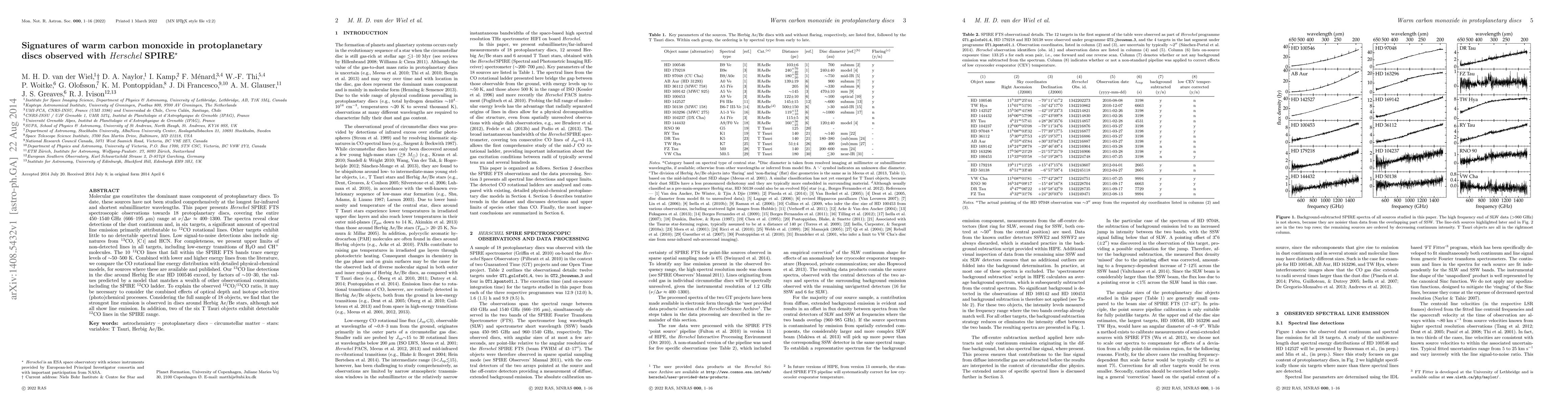 This paper reports Herschel SPIRE observations of 18 protoplanetary discs, detecting significant $^{12}$CO rotational lines in six targets, indicating warm gas. The strongest emission is found in discs around Herbig Ae/Be stars, suggesting complex physical and chemical processes affecting CO isotopes.