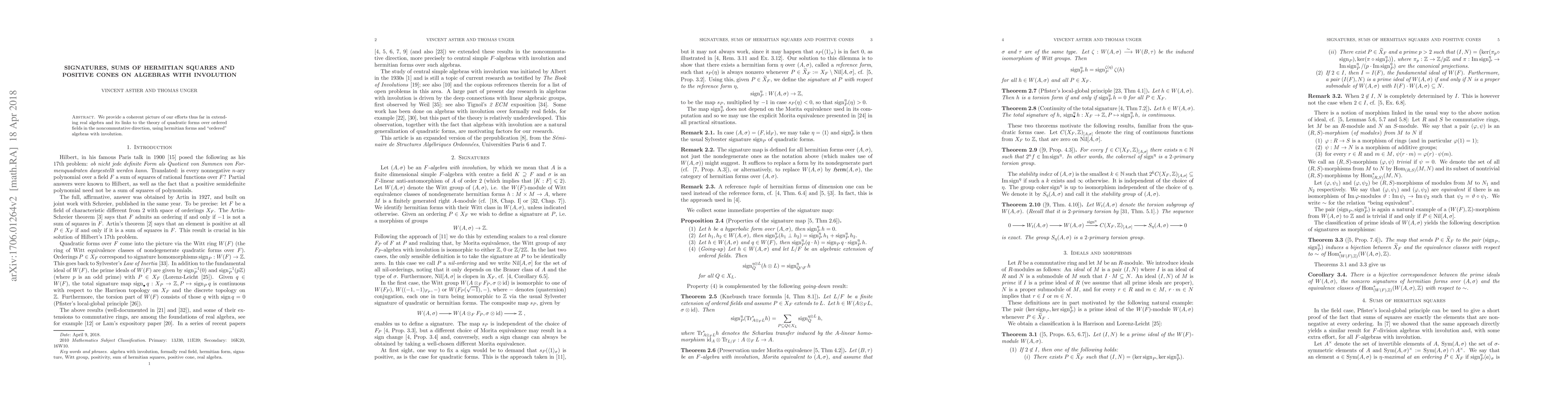 Summary: This paper explores the extension of real algebra and quadratic forms into noncommutative realms through hermitian forms and ordered algebras with involution, aiming to establish a unified framework for these mathematical constructs.