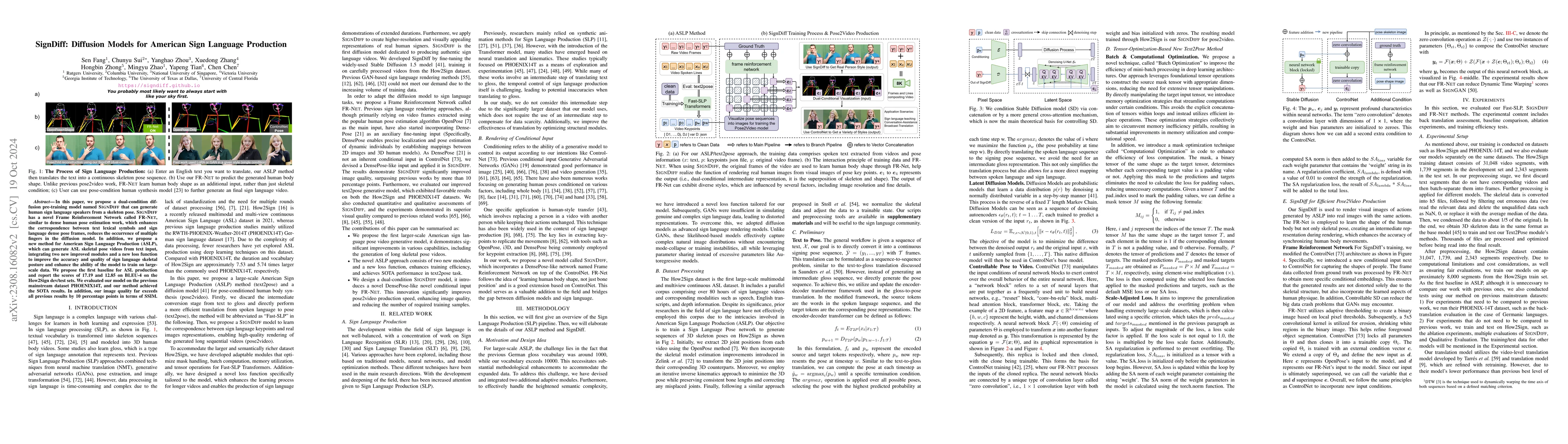 The paper introduces SignDiff, a dual-condition diffusion pre-training model for generating American Sign Language (ASL) from skeleton pose, leveraging the How2Sign dataset. It achieves state-of-the-art results on ASL production, with notable improvements in BLEU scores and image quality.