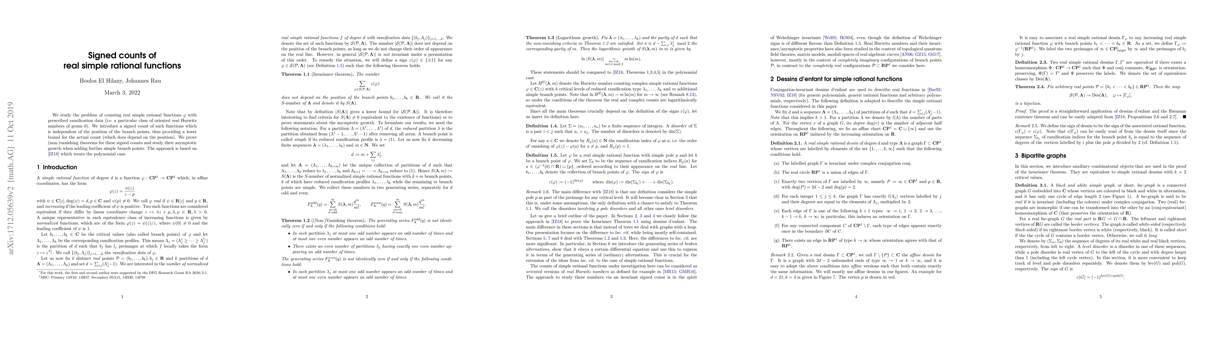 This paper investigates counting real simple rational functions with specified ramification data, introducing a signed count invariant under branch locus changes. The authors prove (non-)vanishing theorems and study the asymptotic growth of these signed counts, extending methods from the polynomial case by Itenberg and Zvonkine.