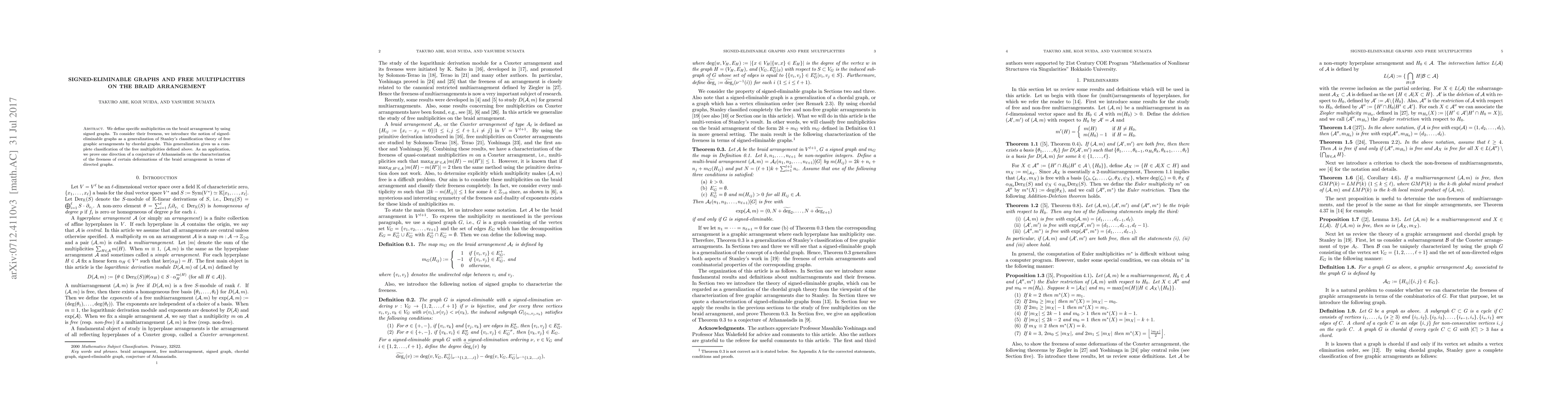 This paper introduces bicolor-eliminable graphs to classify multiplicities on the braid arrangement, extending Stanley's free graphic arrangement theory. It proves one part of a conjecture regarding the freeness of the deformation of the braid arrangement using directed graphs.