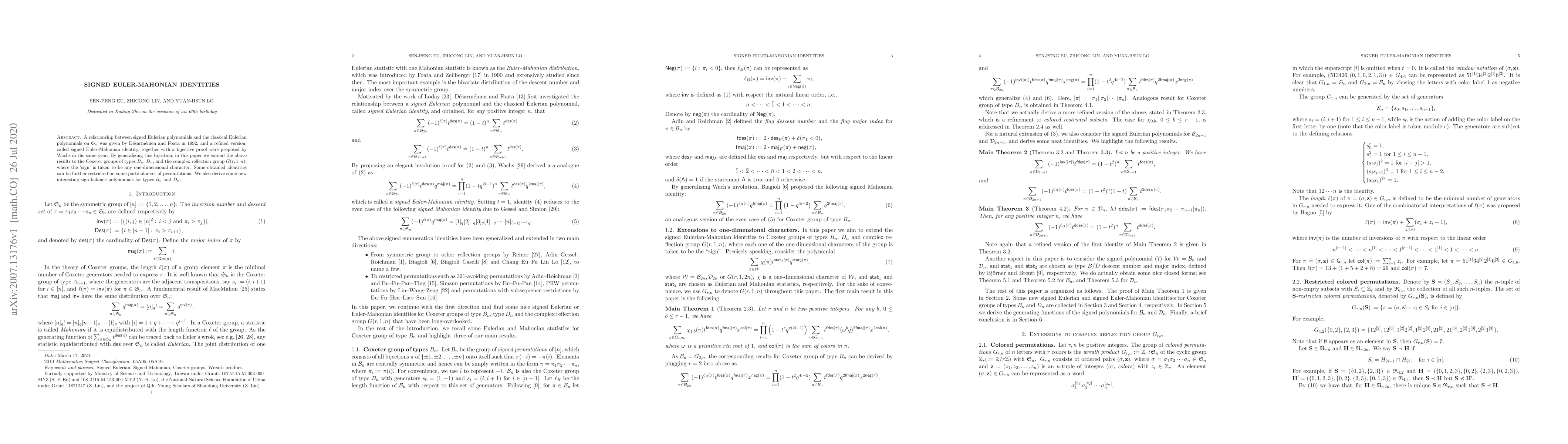 This paper extends signed Euler-Mahonian identities to Coxeter groups of types $B_n$, $D_n$, and the complex reflection group $G(r,1,n)$, deriving new sign-balance polynomials and restricting some identities to specific permutation sets.