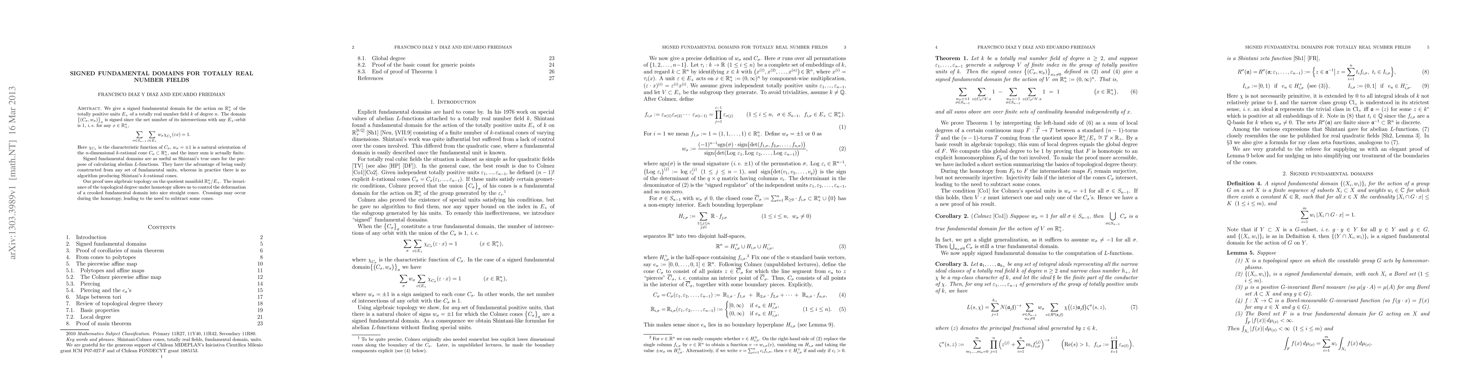 We give a signed fundamental domain for the action on $\mathbb{R}^n_+$ of the totally positive units $E_+$ of a totally real number field $k$ of degree $n$. The domain $\big\{(C_\sigma,w_\sigma) \big\}_\sigma$ is signed since the net number of its intersections with any $E_+$-orbit is 1, i. e. for any $x\in \mathbb{R}^n_+$, $$ \sum_{\sigma\in S_{n-1}} \sum_{\varepsilon\in E_+} w_\sigma\chi^{\phantom{1}}_{C_\sigma}(\varepsilon x) = 1. $$ Here $\chi_{C_\sigma}$ is the characteristic function of $C_\sigma$, $w_\sigma=\pm1$ is a natural orientation of the $n$-dimensional $k$-rational cone $C_\sigma\subset\mathbb{R}^n_+$, and the inner sum is actually finite. Signed fundamental domains are as useful as Shintani's true ones for the purpose of calculating abelian $L$-functions. They have the advantage of being easily constructed from any set of fundamental units, whereas in practice there is no algorithm producing Shintani's $k$-rational cones. Our proof uses algebraic topology on the quotient manifold $\mathbb{R}^n_+/E_+$. The invariance of the topological degree under homotopy allows us to control the deformation of a crooked fundamental domain into nice straight cones. Crossings may occur during the homotopy, leading to the need to subtract some cones.
