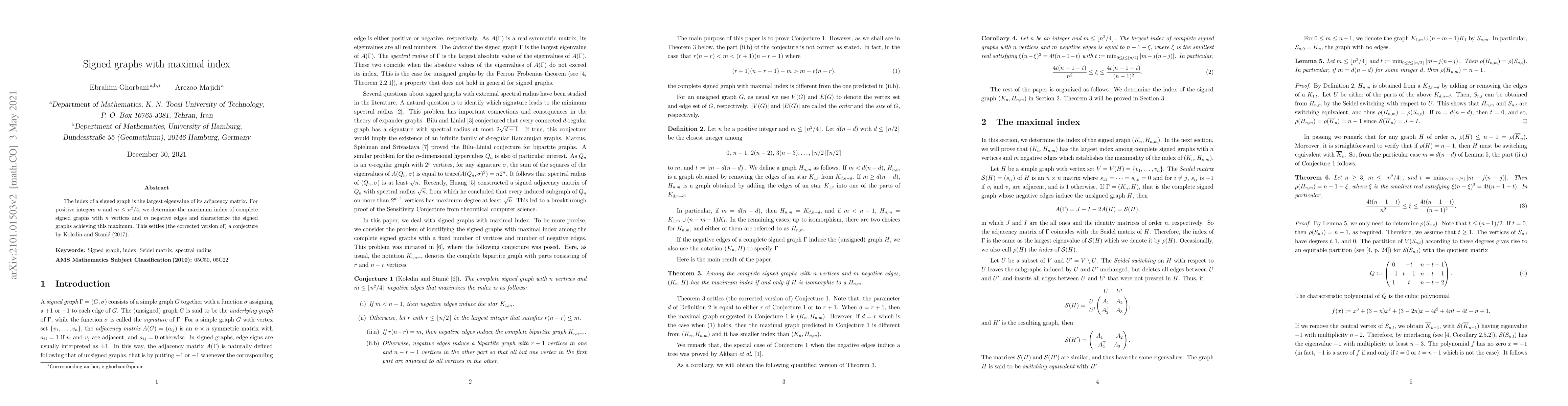 A combination of graph theory and spectral analysis was used to study the properties of signed graphs.