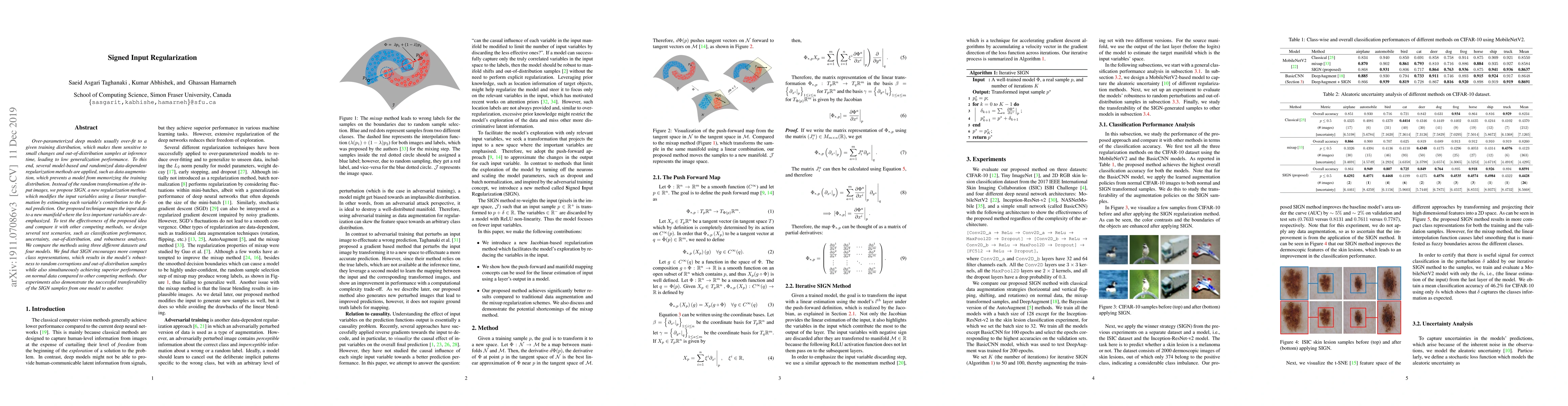 Over-parameterized deep models usually over-fit to a given training distribution, which makes them sensitive to small changes and out-of-distribution samples at inference time, leading to low generalization performance. To this end, several model-based and randomized data-dependent regularization methods are applied, such as data augmentation, which prevents a model from memorizing the training distribution. Instead of the random transformation of the input images, we propose SIGN, a new regularization method, which modifies the input variables using a linear transformation by estimating each variable's contribution to the final prediction. Our proposed technique maps the input data to a new manifold where the less important variables are de-emphasized. To test the effectiveness of the proposed idea and compare it with other competing methods, we design several test scenarios, such as classification performance, uncertainty, out-of-distribution, and robustness analyses. We compare the methods using three different datasets and four models. We find that SIGN encourages more compact class representations, which results in the model's robustness to random corruptions and out-of-distribution samples while also simultaneously achieving superior performance on normal data compared to other competing methods. Our experiments also demonstrate the successful transferability of the SIGN samples from one model to another.