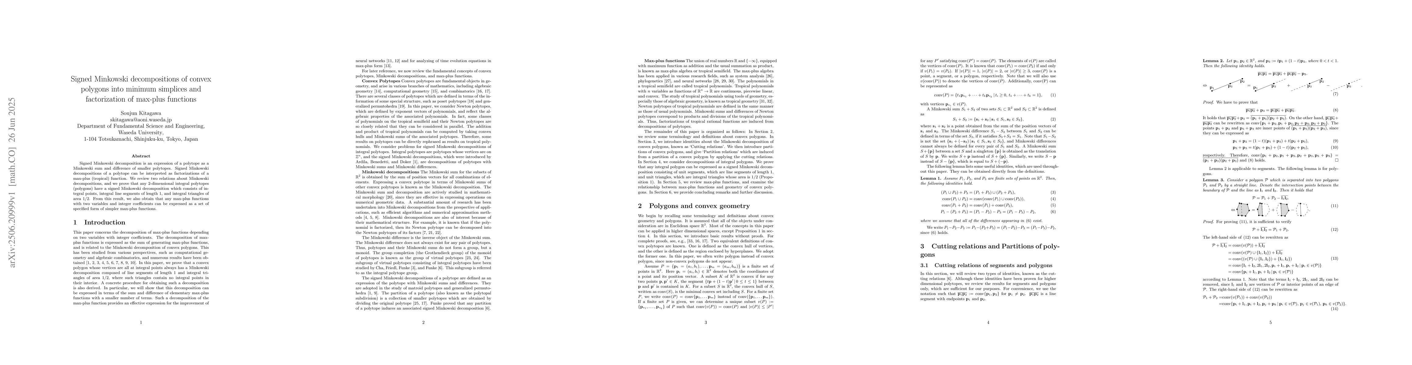 The paper establishes that all integral polygons can be decomposed into signed Minkowski sums of elementary components, linking geometric decompositions to algebraic factorizations of max-plus functions, and provides constructive algorithms for such decompositions.