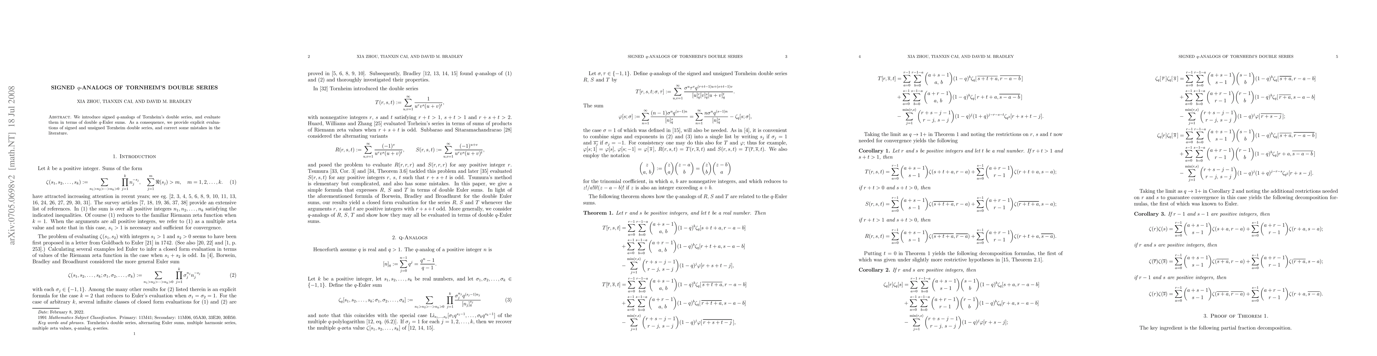 This paper introduces signed q-analogs of Tornheim's double series and evaluates them using double q-Euler sums. It also provides explicit evaluations of both signed and unsigned Tornheim double series and corrects previous errors in the literature.