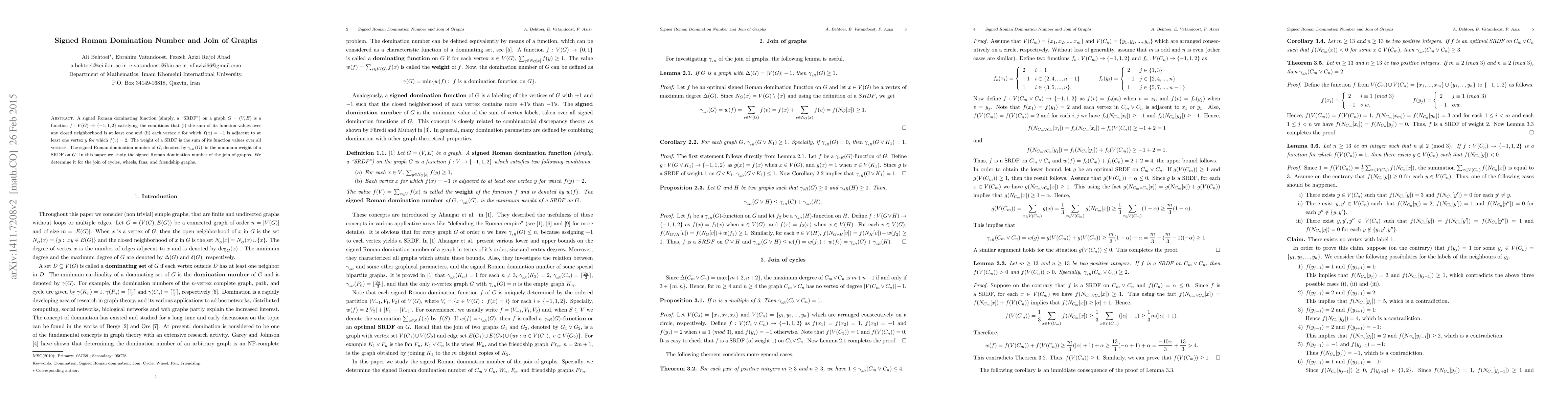 Summary: This paper investigates the signed Roman domination number for the join of specific graph types, including cycles, wheels, fans, and friendship graphs, providing detailed results for each configuration.