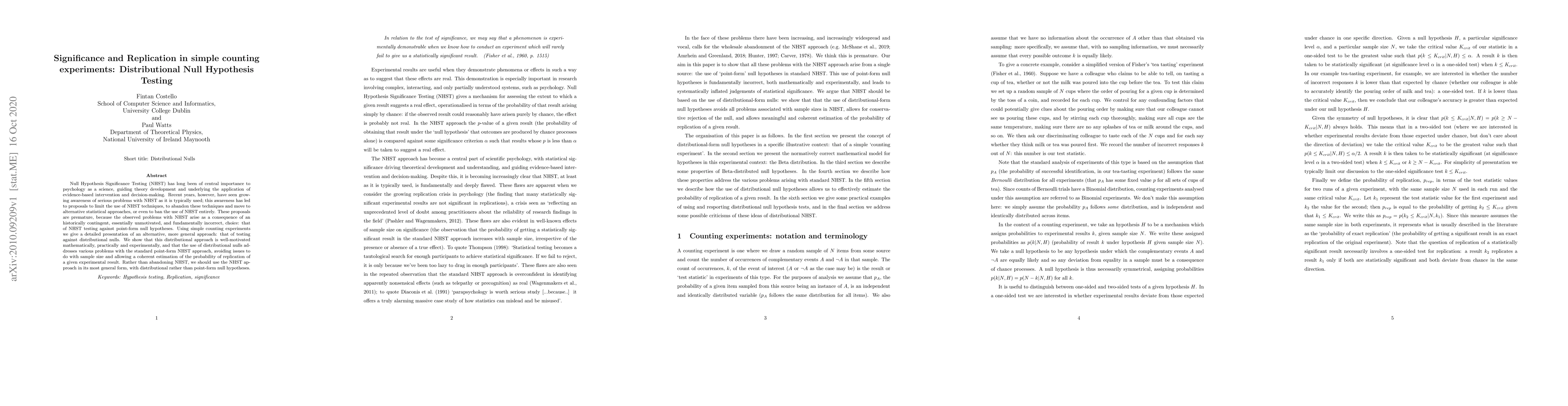 Null Hypothesis Significance Testing (NHST) has long been of central importance to psychology as a science, guiding theory development and underlying the application of evidence-based intervention and decision-making. Recent years, however, have seen growing awareness of serious problems with NHST as it is typically used; this awareness has led to proposals to limit the use of NHST techniques, to abandon these techniques and move to alternative statistical approaches, or even to ban the use of NHST entirely. These proposals are premature, because the observed problems with NHST arise as a consequence of an historically contingent, essentially unmotivated, and fundamentally incorrect, choice: that of NHST testing against point-form null hypotheses. Using simple counting experiments we give a detailed presentation of an alternative, more general approach: that of testing against distributional nulls. We show that this distributional approach is well-motivated mathematically, practically and experimentally, and that the use of distributional nulls addresses various problems with the standard point-form NHST approach, avoiding issues to do with sample size and allowing a coherent estimation of the probability of replication of a given experimental result. Rather than abandoning NHST, we should use the NHST approach in its most general form, with distributional rather than point-form null hypotheses.