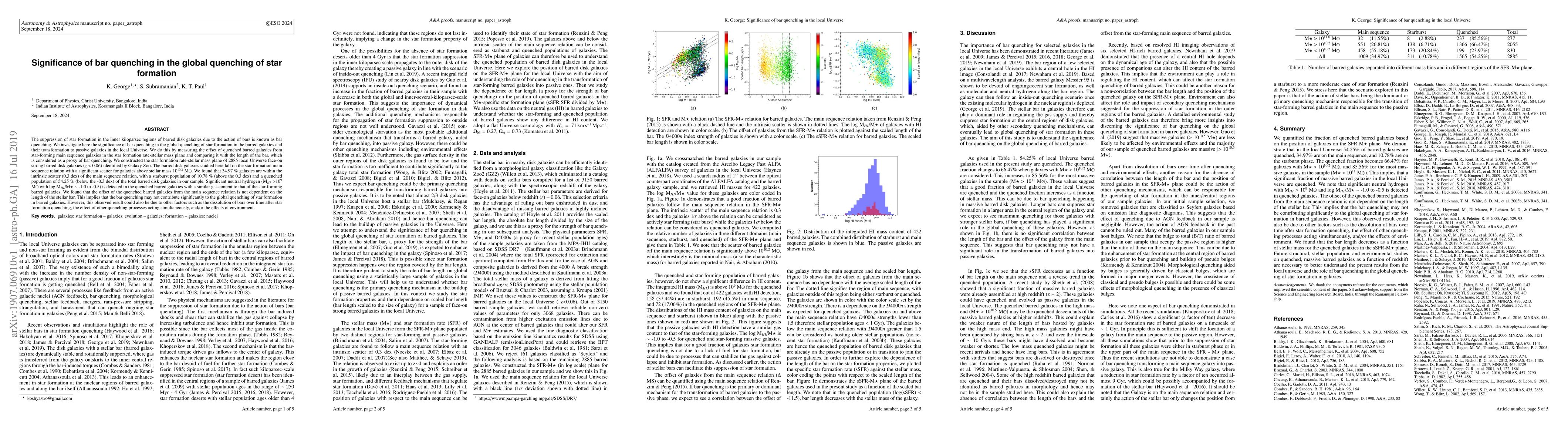 This paper investigates the role of bar quenching in the global suppression of star formation in barred disk galaxies, finding that while bars may locally suppress star formation, they do not significantly contribute to the global quenching process. The study concludes that other factors likely play a more substantial role in the transformation of barred galaxies into passive galaxies.