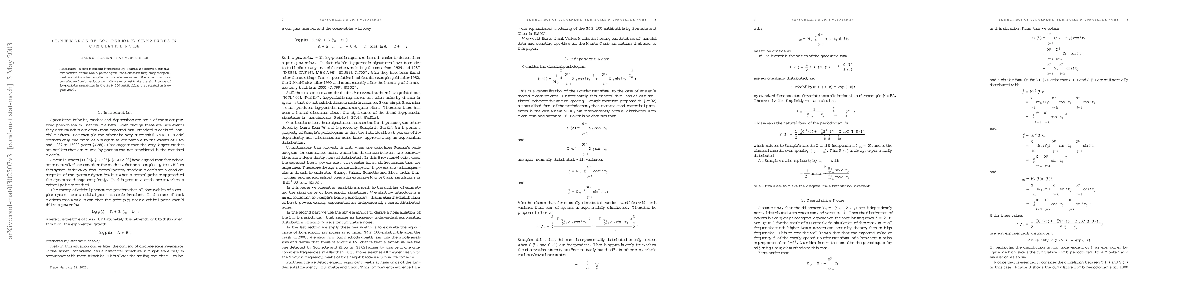 Using methods introduced by Scargle in 1978 we derive a cumulative version of the Lomb periodogram that exhibits frequency independent statistics when applied to cumulative noise. We show how this cumulative Lomb periodogram allows us to estimate the significance of log-periodic signatures in the S&P 500 anti-bubble that started in August 2000.