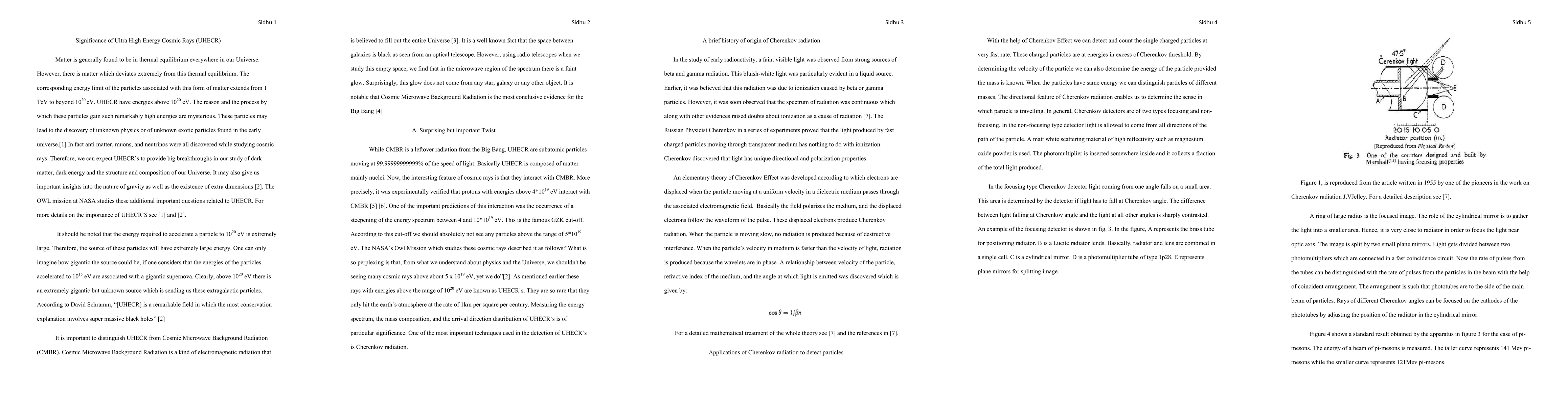 This paper explores the scientific motivation behind studying ultra high energy cosmic rays, emphasizing their potential to enhance our understanding of the universe. It also discusses the use of water Cherenkov detectors, like those in the Pierre Auger Observatory, to identify these high-energy particles through Cherenkov radiation.