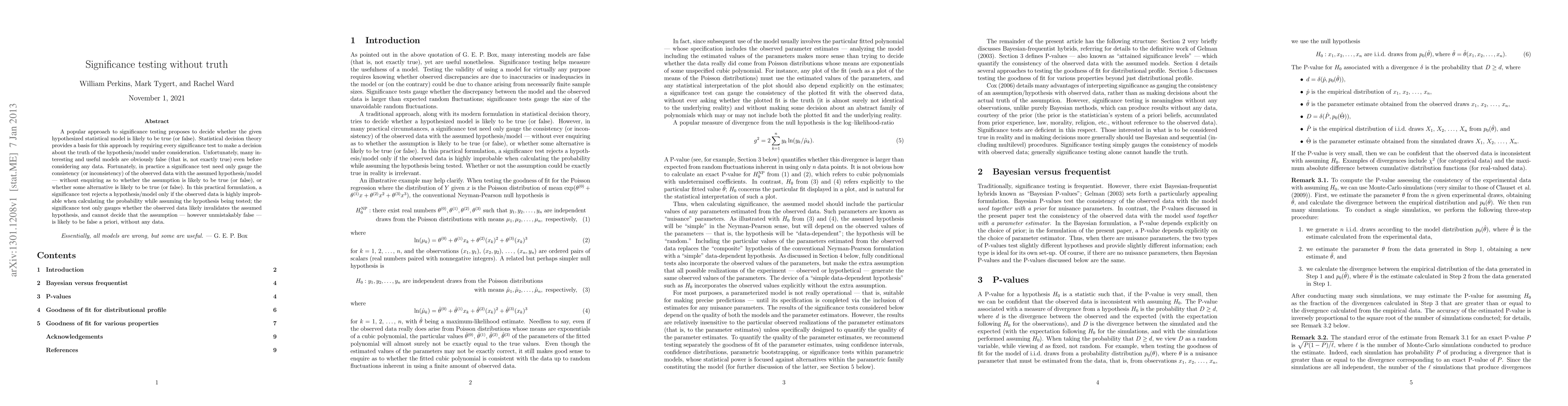 A research paper suggests that significance testing can gauge whether observed data is inconsistent with a hypothesis without deciding on its truth value; it rejects the hypothesis if the data is highly improbable under the assumption.