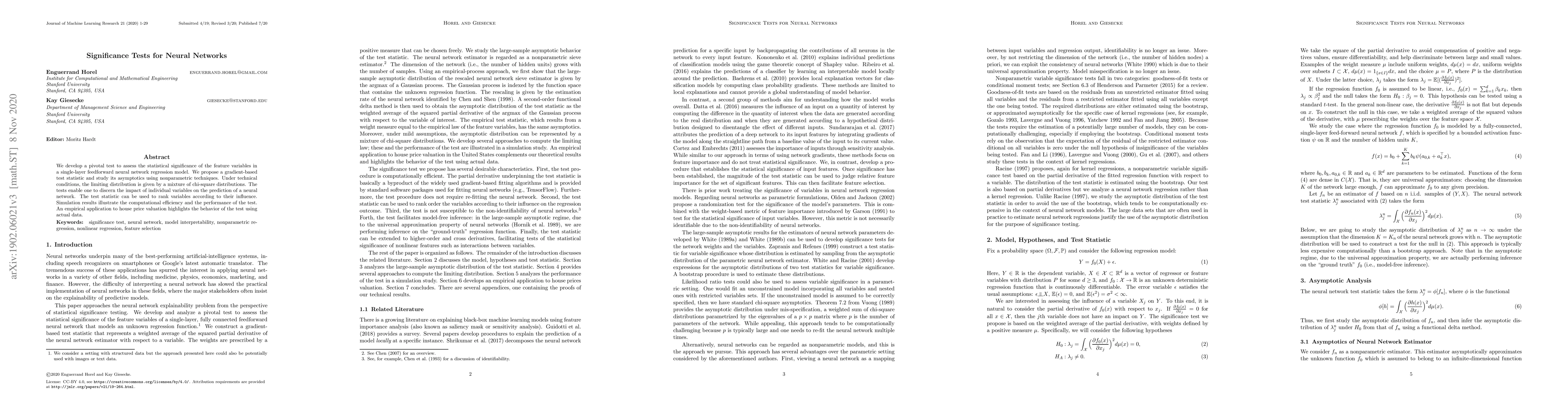 Researchers develop a pivotal test to evaluate the statistical significance of variables in neural networks, allowing for ranking of variable influence and discerning individual impacts on prediction. The test uses a gradient-based statistic and has been shown to be computationally efficient through simulation results.