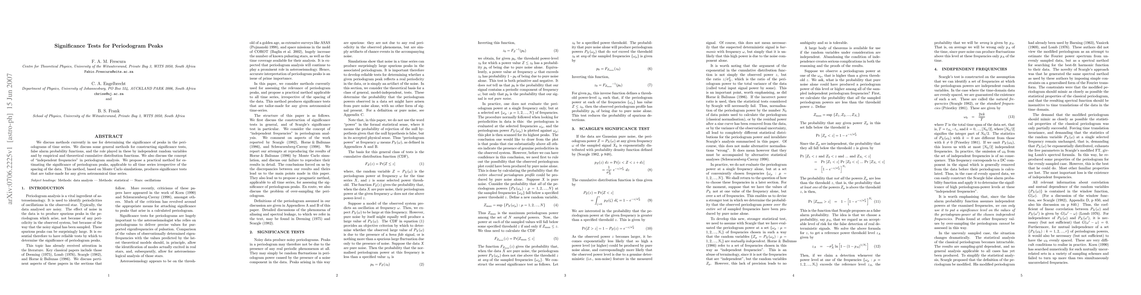 We discuss methods currently in use for determining the significance of peaks in the periodograms of time series. We discuss some general methods for constructing significance tests, false alarm probability functions, and the role played in these by independent random variables and by empirical and theoretical cumulative distribution functions. We also discuss the concept of "independent frequencies" in periodogram analysis. We propose a practical method for estimating the significance of periodogram peaks, applicable to all time series irrespective of the spacing of the data. This method, based on Monte Carlo simulations, produces significance tests that are tailor-made for any given astronomical time series.
