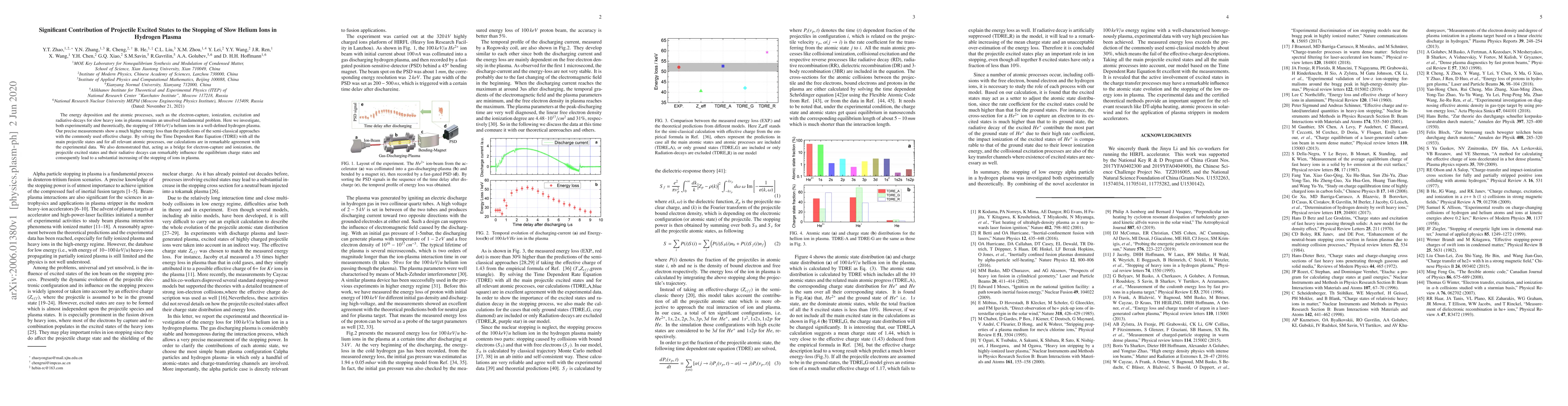 This paper investigates the stopping of 100 keV helium ions in hydrogen plasma, revealing significant contributions from projectile excited states to energy loss, which exceed predictions from semi-classical models. Theoretical calculations using the Time Dependent Rate Equation, incorporating all relevant atomic processes, align well with experimental data, highlighting the role of excited states in electron-capture and ionization.