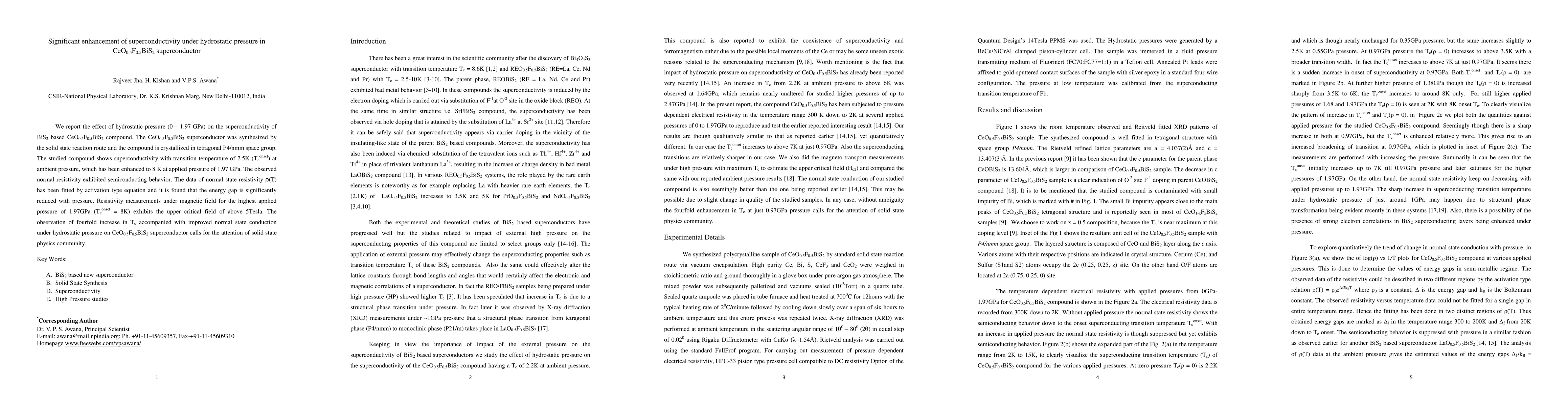 This study investigates the impact of hydrostatic pressure on the superconductivity of CeO0.5F0.5BiS2, finding a fourfold increase in transition temperature from 2.5K to 8K at 1.97GPa, alongside enhanced normal state resistivity and an upper critical field exceeding 5 Tesla.