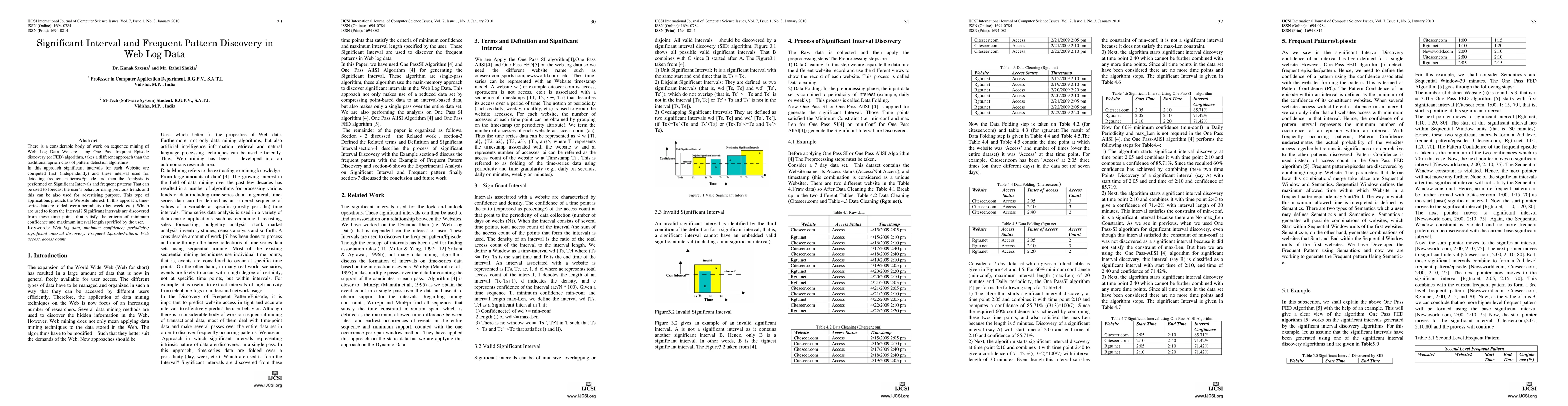 There is a considerable body of work on sequence mining of Web Log Data. We are using One Pass frequent Episode discovery (or FED) algorithm, takes a different approach than the traditional apriori class of pattern detection algorithms. In this approach significant intervals for each Website are computed first (independently) and these interval used for detecting frequent patterns/Episode and then the Analysis is performed on Significant Intervals and frequent patterns That can be used to forecast the user's behavior using previous trends and this can be also used for advertising purpose. This type of applications predicts the Website interest. In this approach, time-series data are folded over a periodicity (day, week, etc.) Which are used to form the Interval? Significant intervals are discovered from these time points that satisfy the criteria of minimum confidence and maximum interval length specified by the user.