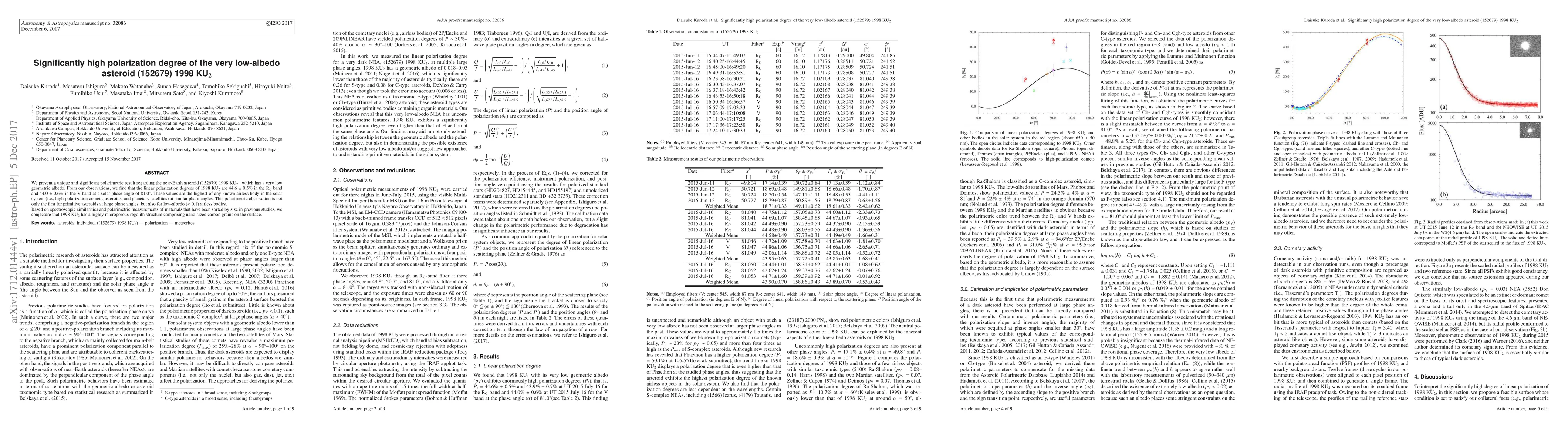 We present a unique and significant polarimetric result regarding the near-Earth asteroid (152679) 1998 KU$_\mathrm{2}$ , which has a very low geometric albedo. From our observations, we find that the linear polarization degrees of 1998 KU$_\mathrm{2}$ are 44.6 $\pm$ 0.5\% in the R$_\mathrm{C}$ band and 44.0 $\pm$ 0.6\% in the V band at a solar phase angle of 81.0\degr. These values are the highest of any known airless body in the solar system (i.e., high-polarization comets, asteroids, and planetary satellites) at similar phase angles. This polarimetric observation is not only the first for primitive asteroids at large phase angles, but also for low-albedo (< 0.1) airless bodies. Based on spectroscopic similarities and polarimetric measurements of materials that have been sorted by size in previous studies, we conjecture that 1998 KU$_\mathrm{2}$ has a highly microporous regolith structure comprising nano-sized carbon grains on the surface.
