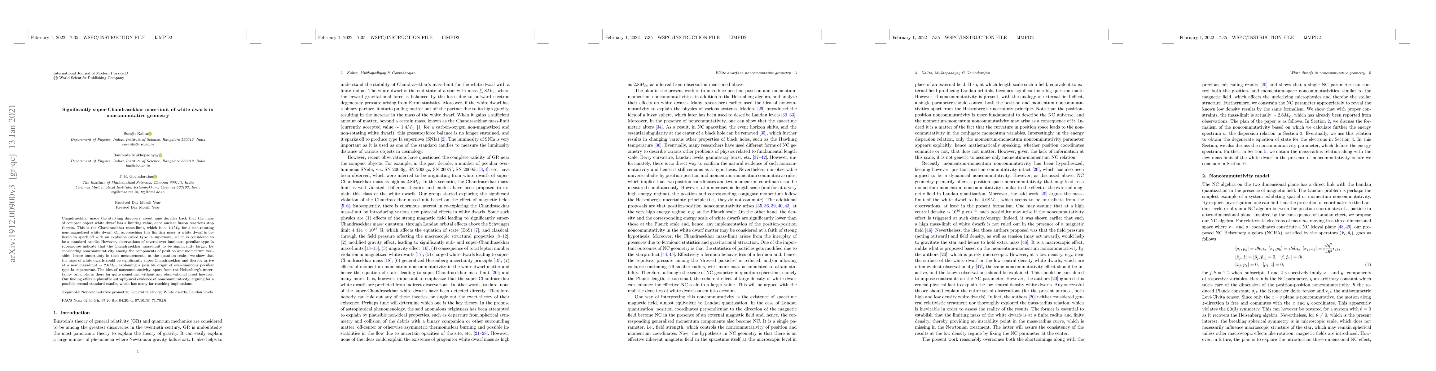 This paper proposes that noncommutative geometry can significantly increase the mass limit of white dwarfs beyond the traditional Chandrasekhar limit, suggesting a new mass-limit of approximately 2.6 solar masses. This finding potentially explains the origin of over-luminous type Ia supernovae and offers evidence for noncommutativity in quantum scales.