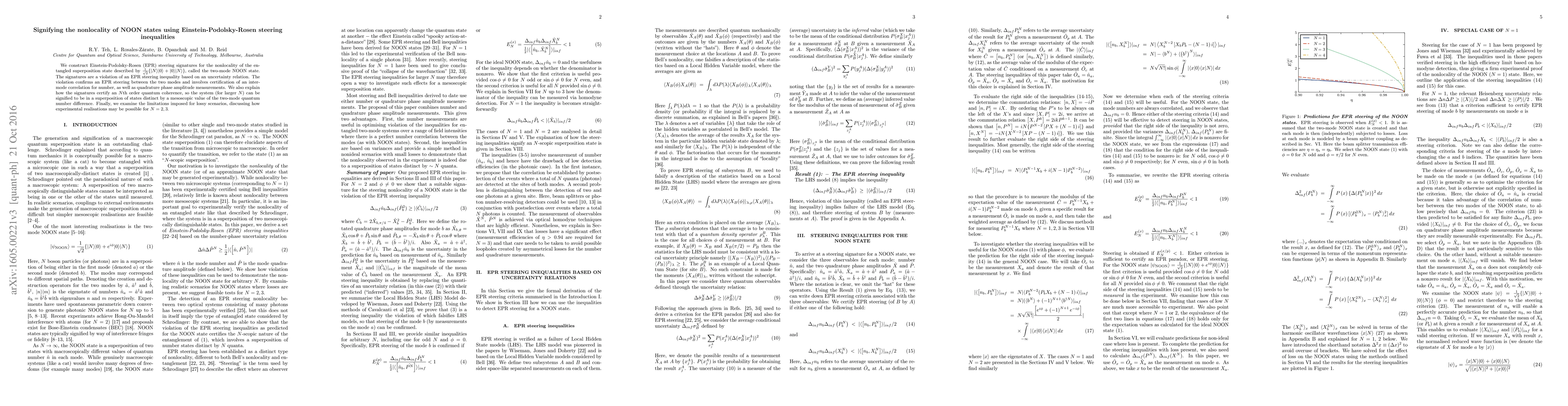 This paper constructs Einstein-Podolsky-Rosen (EPR) steering signatures to demonstrate nonlocality in two-mode NOON states, showing their violation of an EPR steering inequality and certifying inter-mode correlations. It also explores $N$th order quantum coherence and discusses experimental feasibility for $N=2,3$.