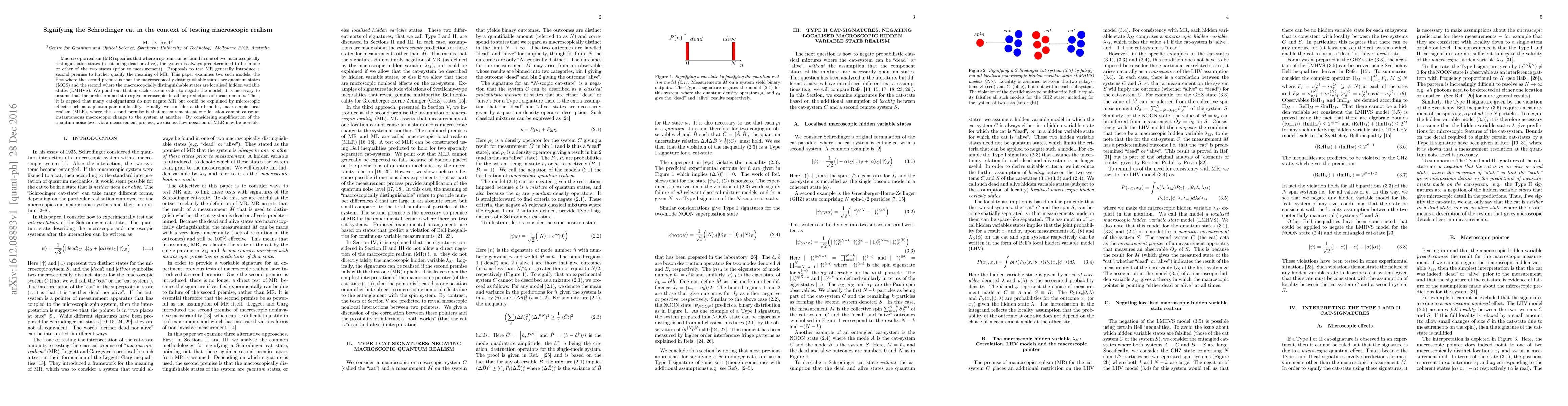Macroscopic realism (MR) specifies that where a system can be found in one of two macroscopically distinguishable states (a cat being dead or alive), the system is always predetermined to be in one or other of the two states (prior to measurement). Proposals to test MR generally introduce a second premise to further qualify the meaning of MR. This paper examines two such models, the first where the second premise is that the macroscopically distinguishable states are quantum states (MQS) and the second where the macroscopcially distinguishable states are localised hidden variable states (LMHVS). We point out that in each case in order to negate the model, it is necessary to assume that the predetermined states give microscopic detail for predictions of measurements. Thus, it is argued that many cat-signatures do not negate MR but could be explained by microscopic effects such as a photon-pair nonlocality. Finally, we consider a third model, macroscopic local realism (MLR), where the second premise is that measurements at one location cannot cause an instantaneous macroscopic change to the system at another. By considering amplification of the quantum noise level via a measurement process, we discuss how negation of MLR may be possible.
