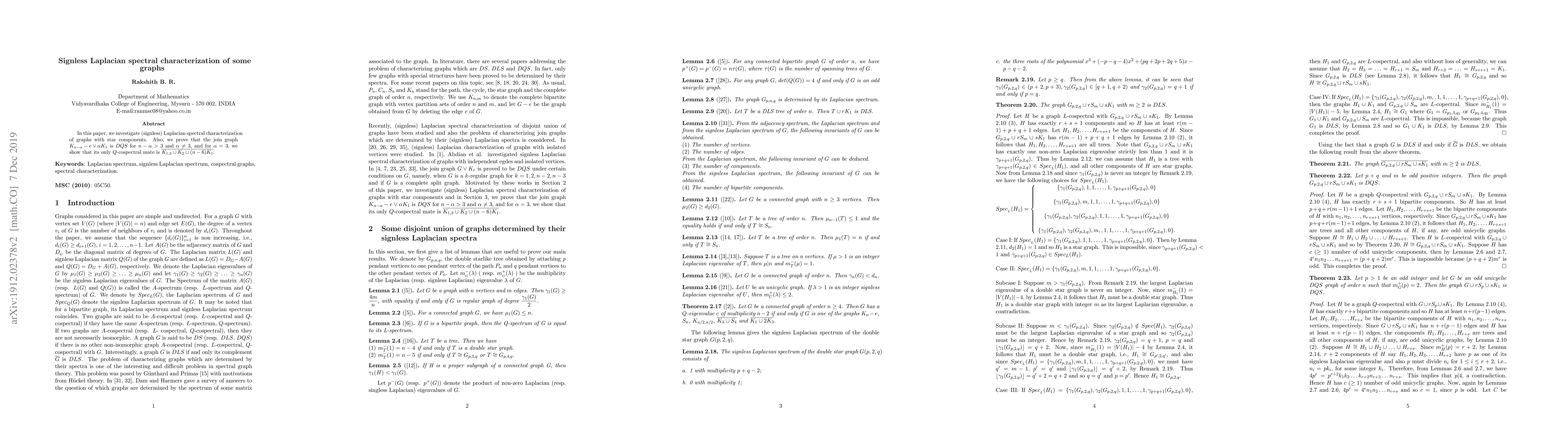 The research investigates the (signless) Laplacian spectral characterization of graphs with star components, proving that the join graph \(K_{n-\alpha}-e\vee \alpha K_{1}\) is DQS for \(n-\alpha >3\) and \(\alpha\neq3\), and identifying its unique Q-cospectral mate when \(\alpha=3\).