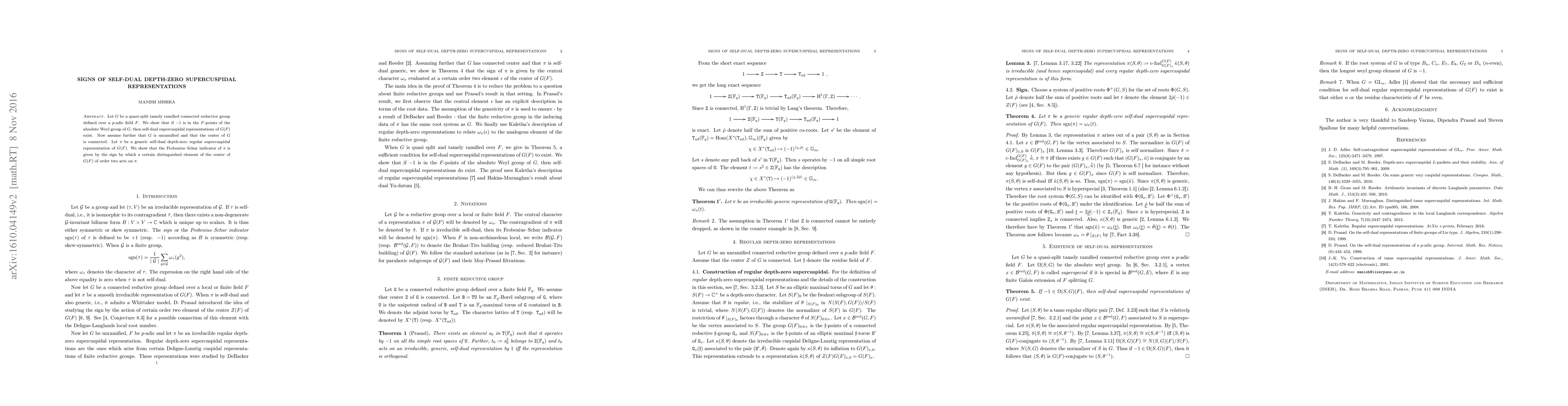 This paper demonstrates the existence of self-dual supercuspidal representations for quasi-split tamely ramified reductive groups over $p$-adic fields when $-1$ is in the $F$-points of the absolute Weyl group. It further specifies the Frobenius-Schur indicator for a generic self-dual depth-zero regular supercuspidal representation, linking it to the action of a distinguished center element of order two.