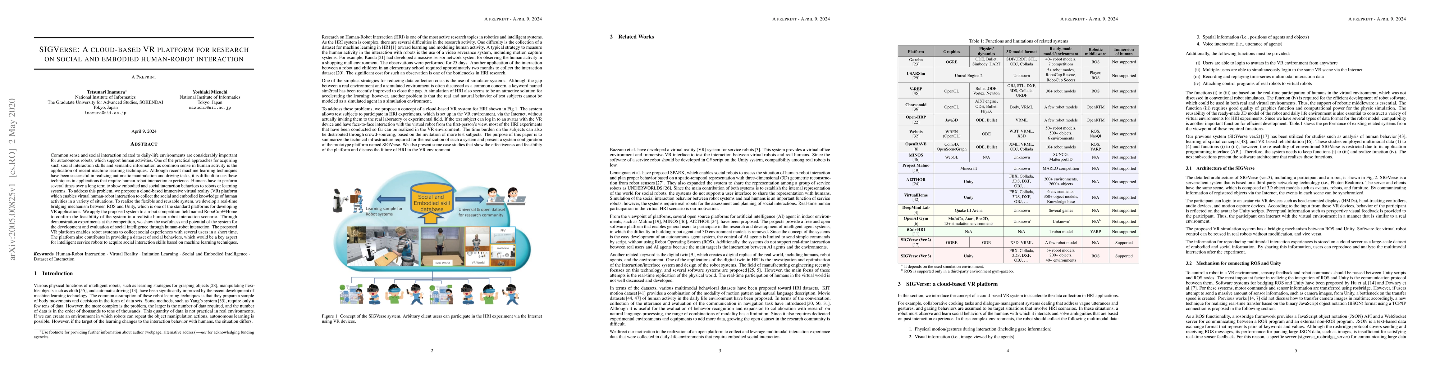 The paper proposes SIGVerse, a cloud-based VR platform for simulating human-robot interaction to gather social and embodied knowledge of human activities. It demonstrates the platform's feasibility in a RoboCup@Home robot competition, showing its potential for developing robots' social intelligence and providing a dataset for machine learning.