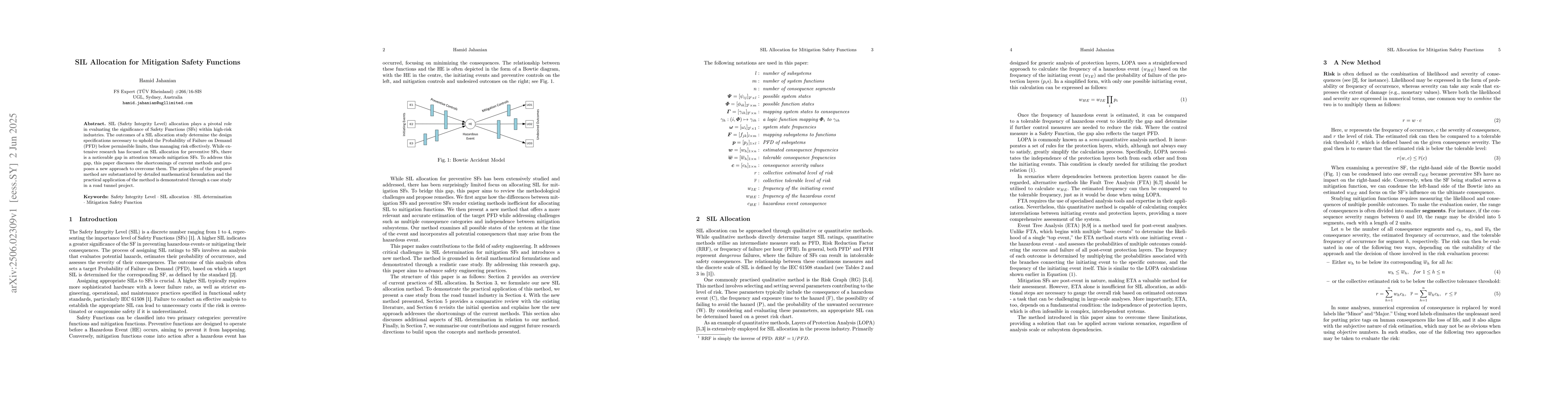 The paper discusses shortcomings of current SIL allocation methods for mitigation SFs and proposes a new approach, supported by mathematical formulation.