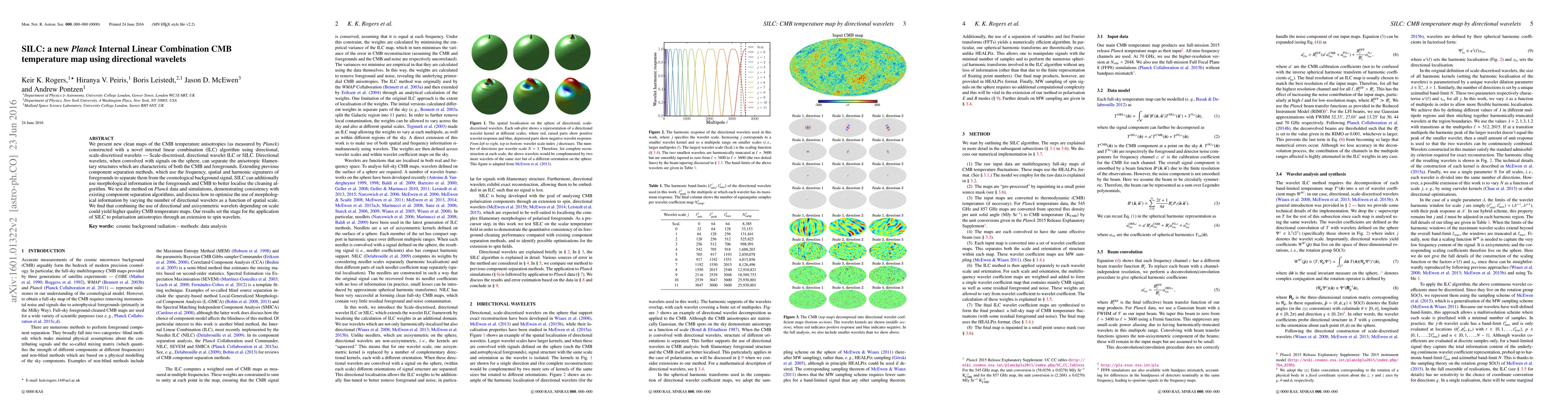 The SILC method uses directional wavelets for an internal linear combination to create cleaner CMB temperature maps by separating filamentary foreground structures. This approach improves upon existing component separation techniques by leveraging morphological information, and combining directional and axisymmetric wavelets optimizes the cleaning process.