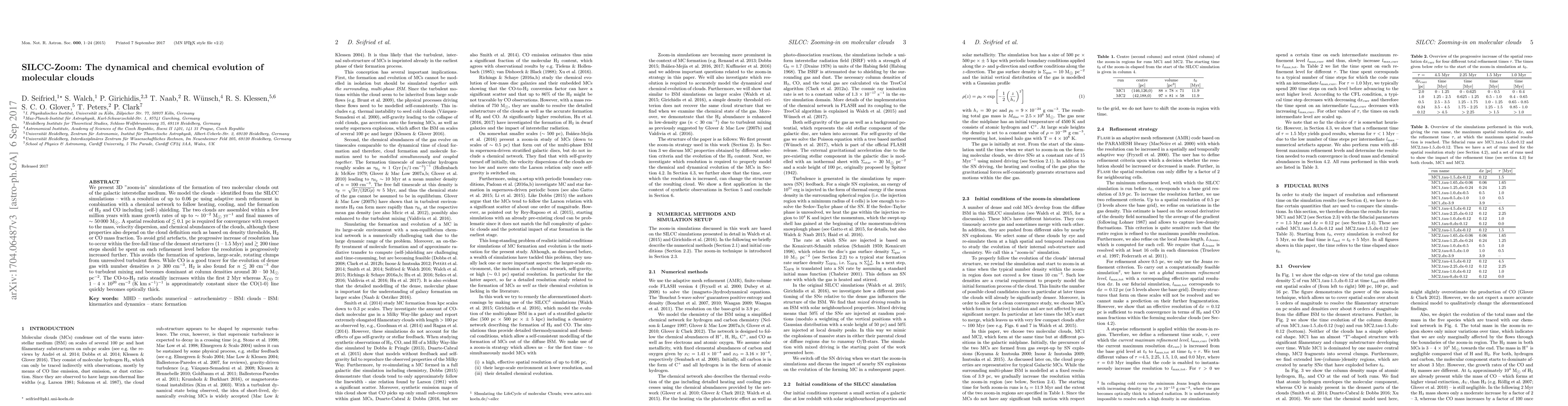 Researchers simulated the formation of two molecular clouds with high resolution, finding they grew to massive sizes in just a few million years and showed complex chemical evolution, including the growth of CO and H2.